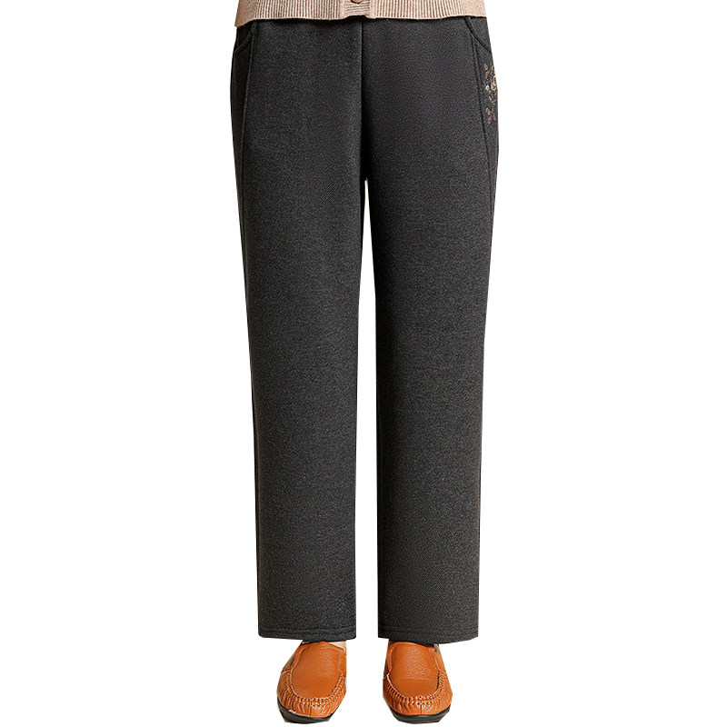 中老年女裤秋冬款加绒加厚妈妈外穿高腰直筒裤奶奶冬装绣花保暖裤