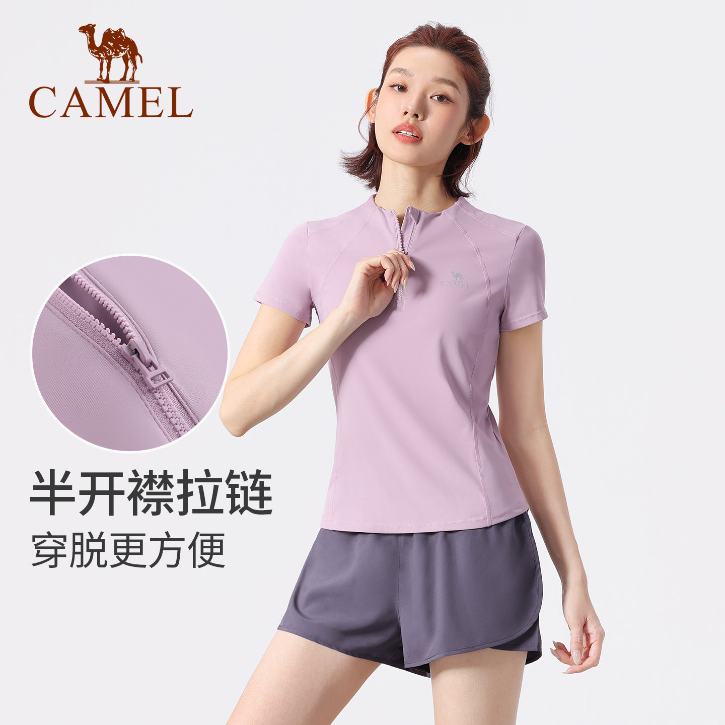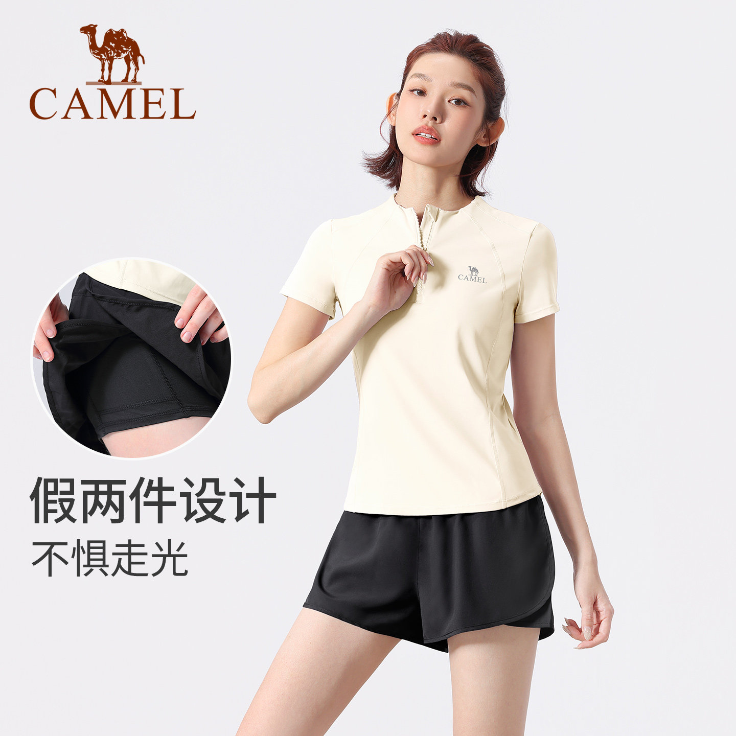骆驼瑜伽服套装女夏季薄款跑步服健身房运动服两件套健身衣服短袖