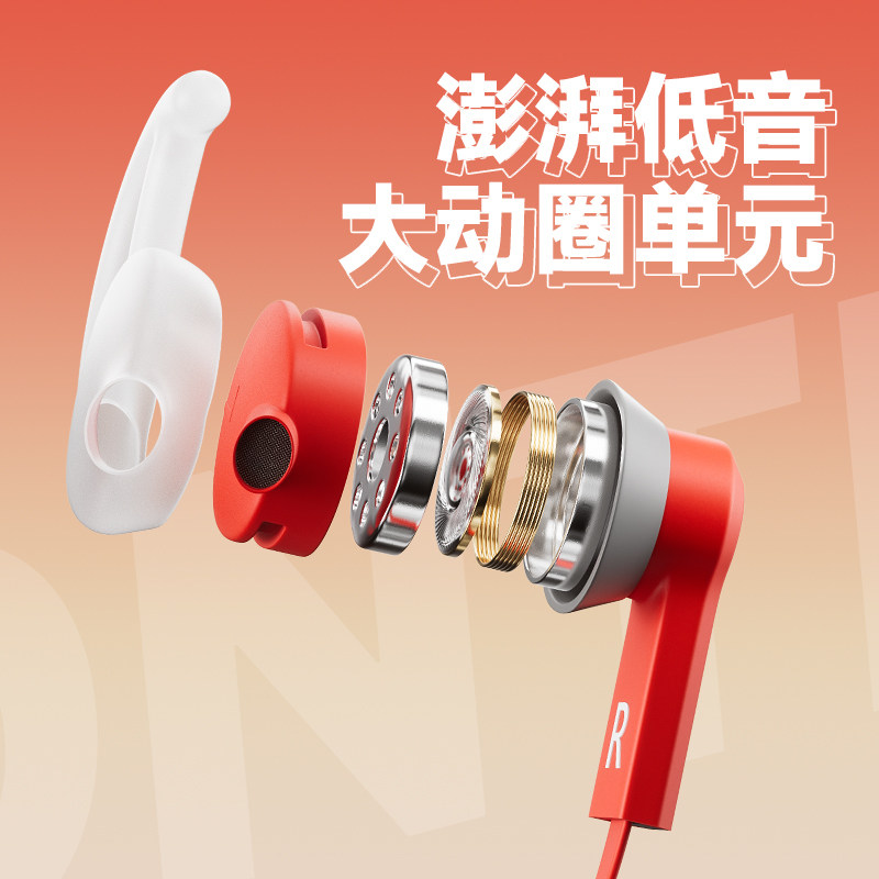 官方重低音耳机有线type-c高音质降噪入耳式手机电脑听歌游戏圆口