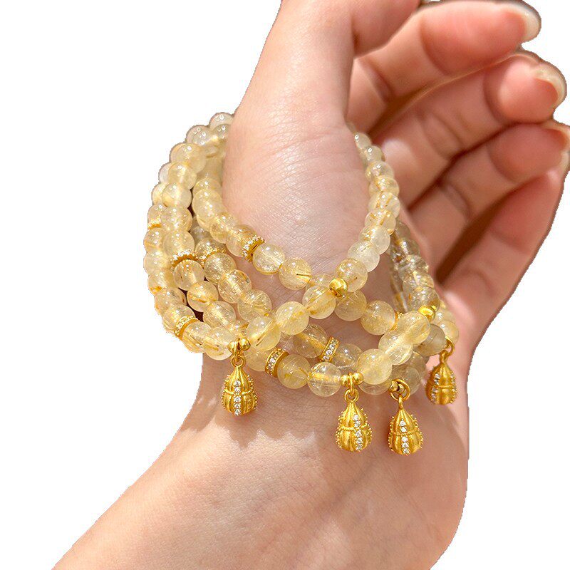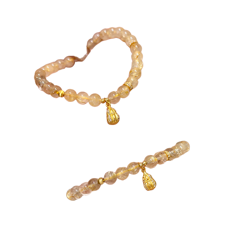 摆件「金盏」天然金发晶黄水晶手串女葫芦配饰招串珠手链