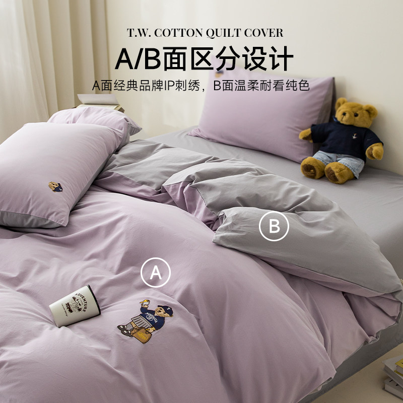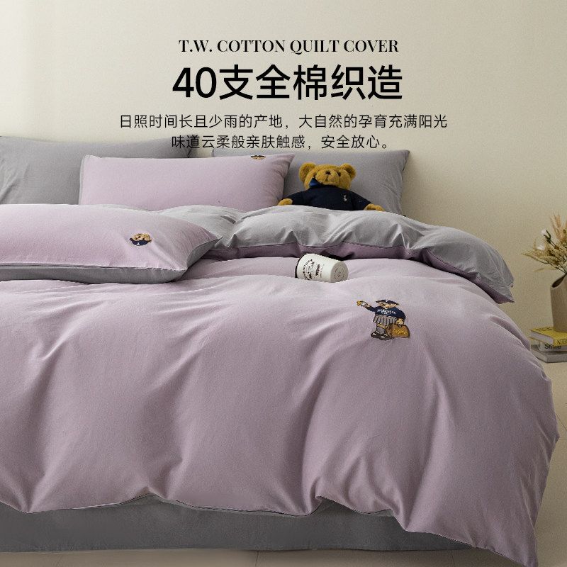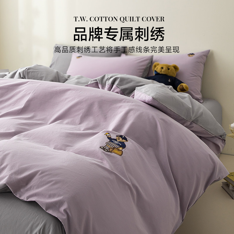 TeenieWeenie小熊刺绣全棉四件套纯色被套床单床上用品三件套