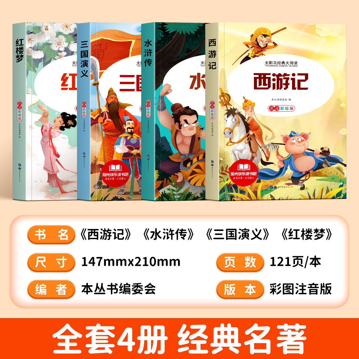 五年级下册必读课外书四大名著小学生版全套注音版红楼梦西游记三国演义水浒传儿童版原著正版快乐读书吧小学生漫画阅读书籍绘本
