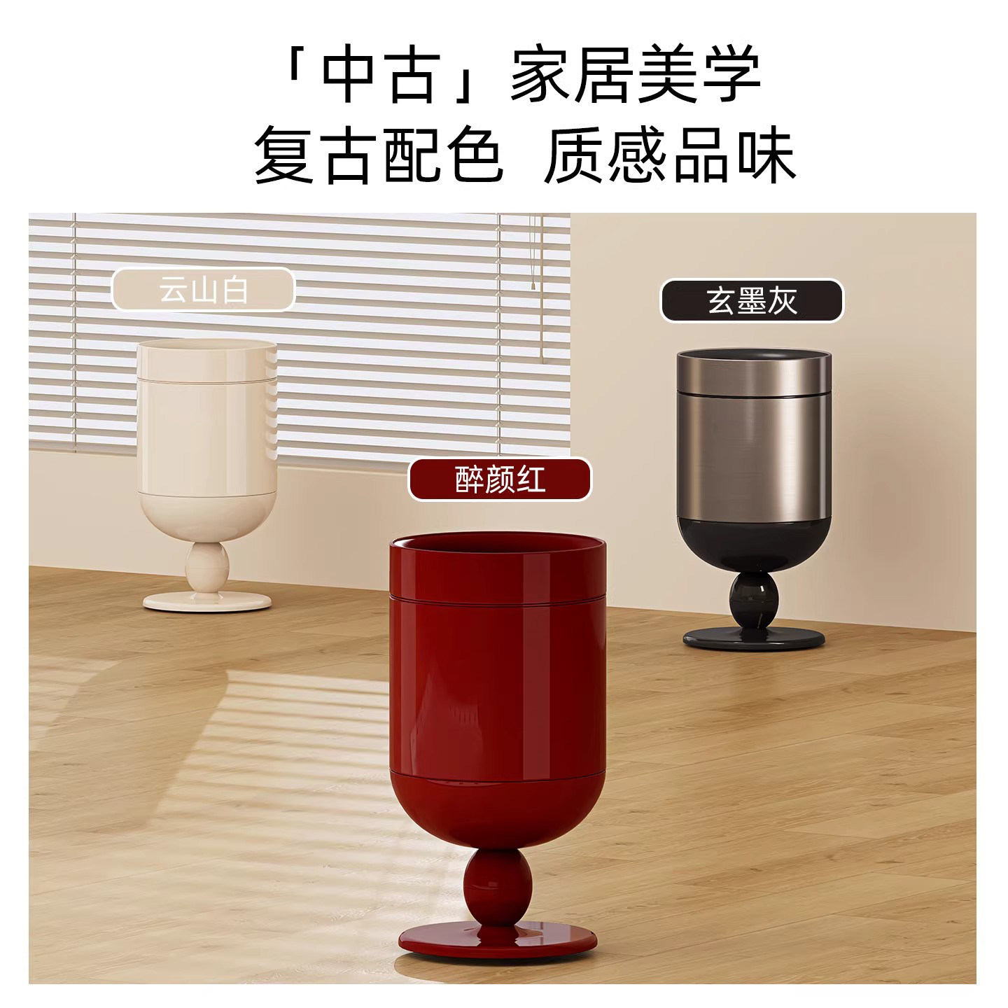 客厅垃圾桶家用2025新款高脚酒杯高颜值无盖复古垃圾筒中古风纸篓