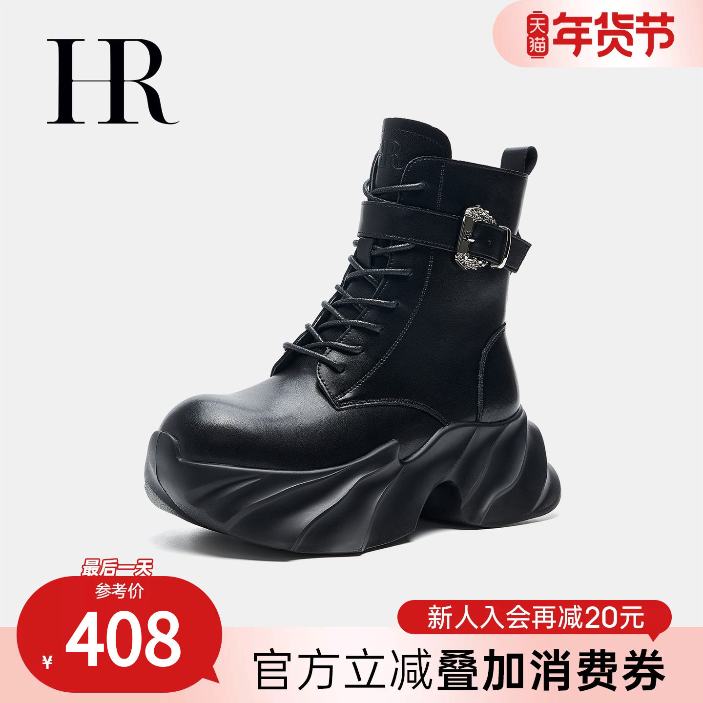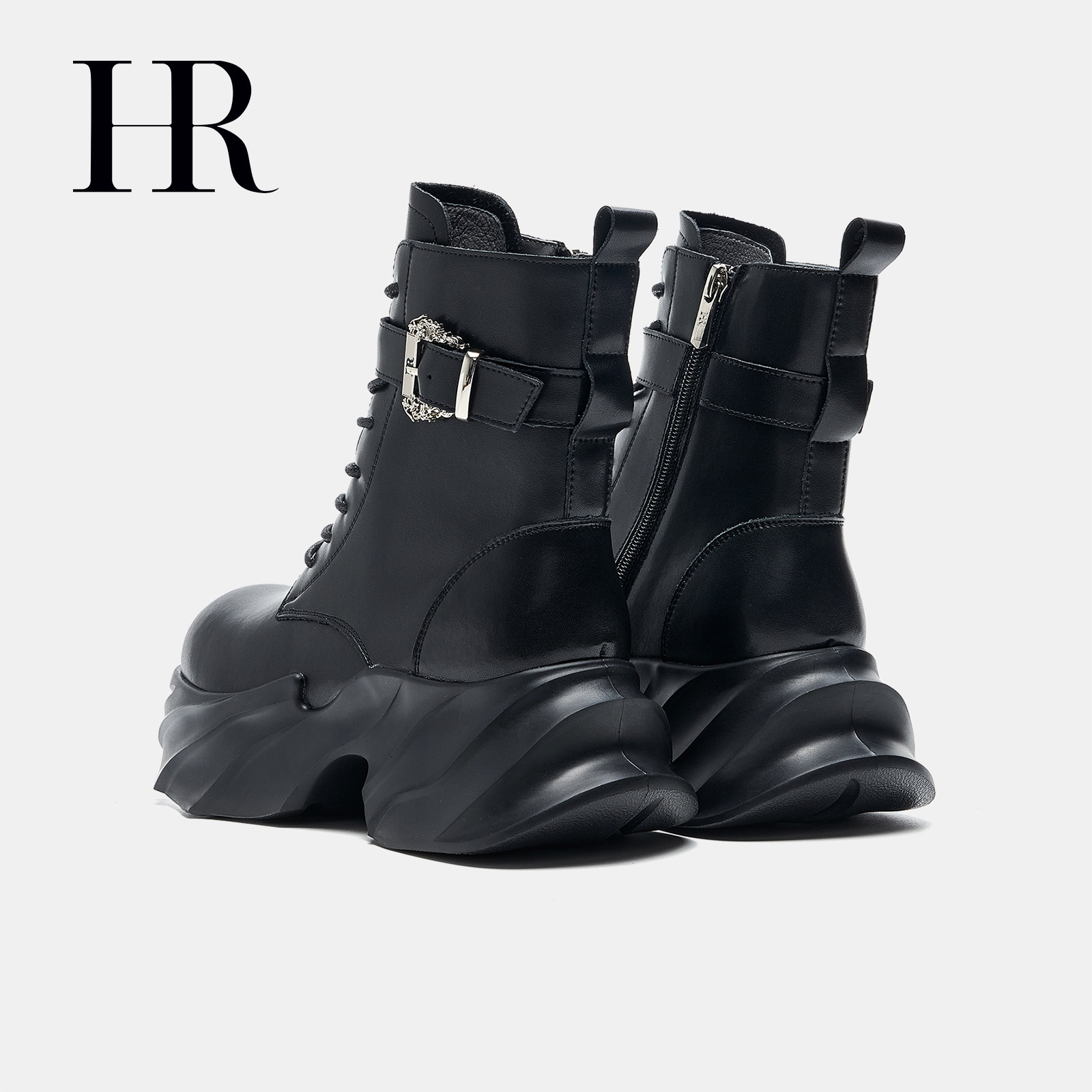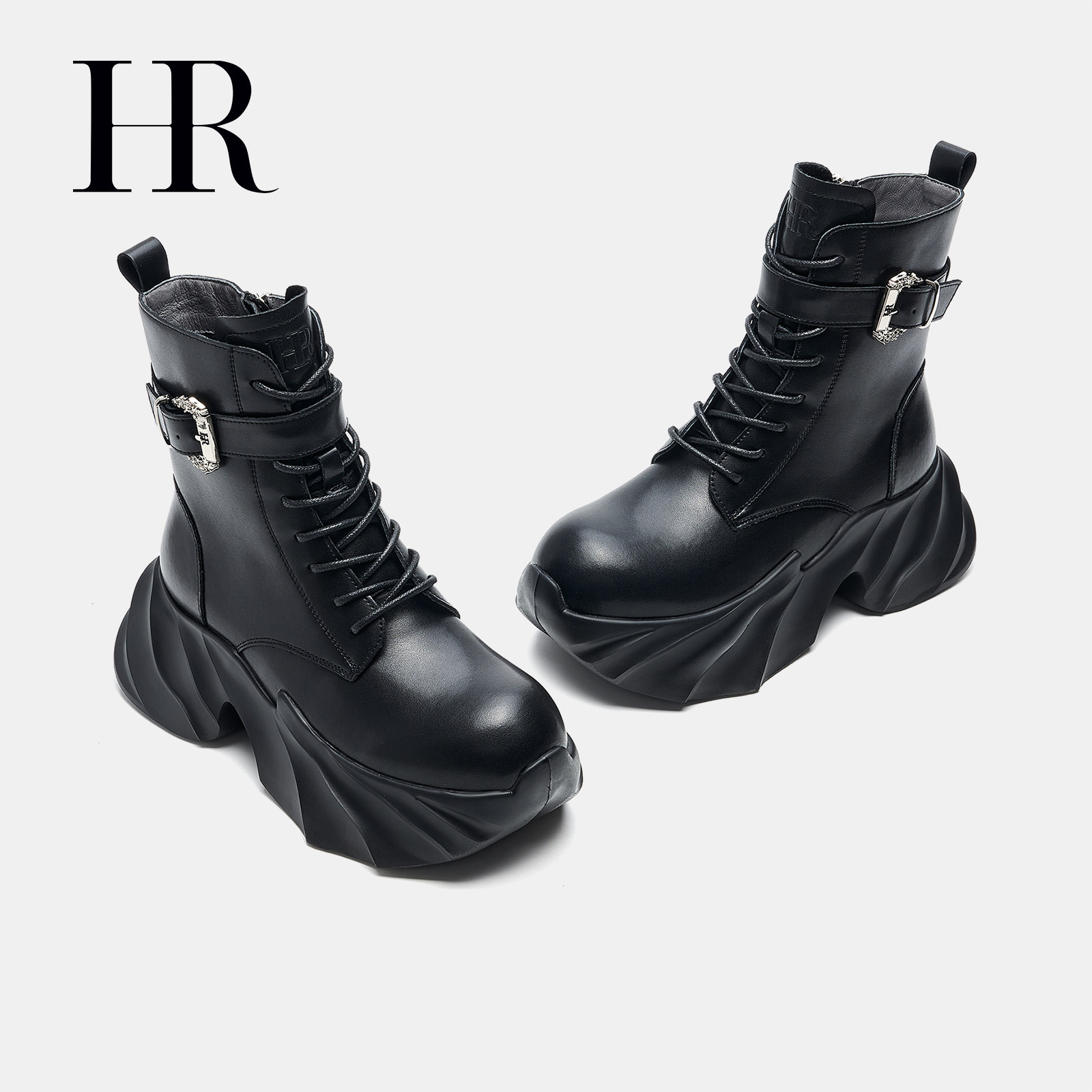 HR赫莲娜女鞋子2026年春季新款马丁靴英伦时尚厚底圆头短筒靴增高