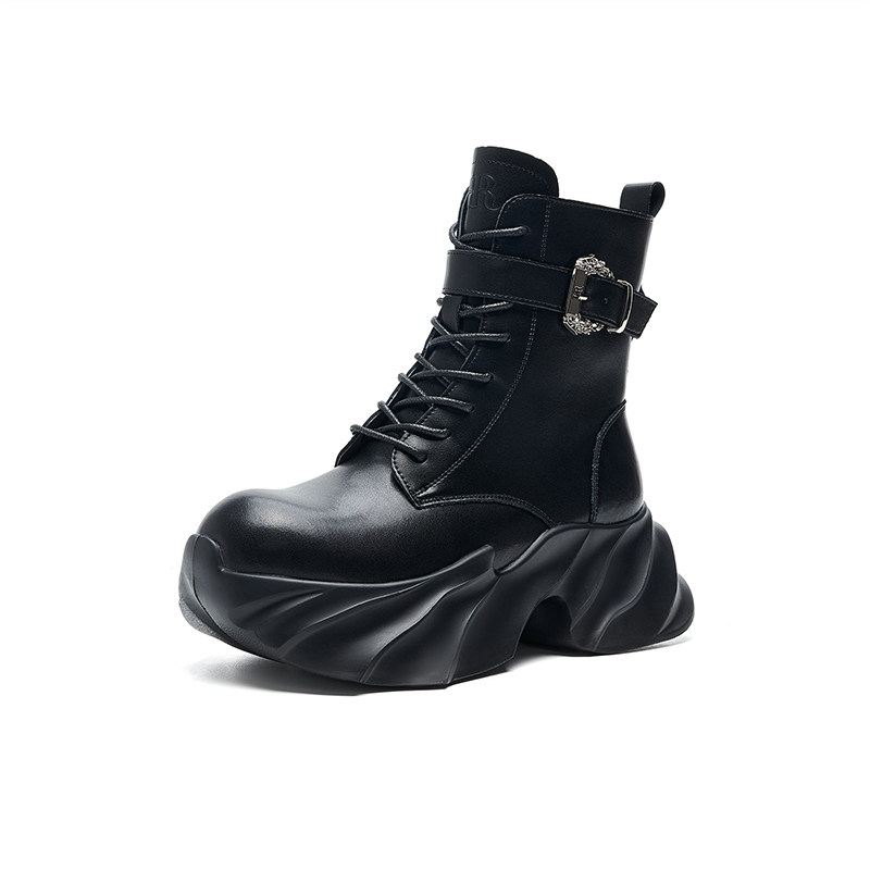 DREAMBOX钧博水洗马皮高帮工装鞋2025秋冬新款防滑厚底增高马丁靴