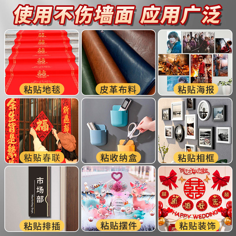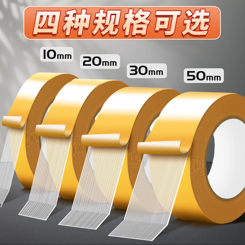 网格双面胶高粘度无痕强力固定墙面粘地毯春联对联专用胶不留痕结婚布置贴喜字耐高温地板革透明布基双面胶带