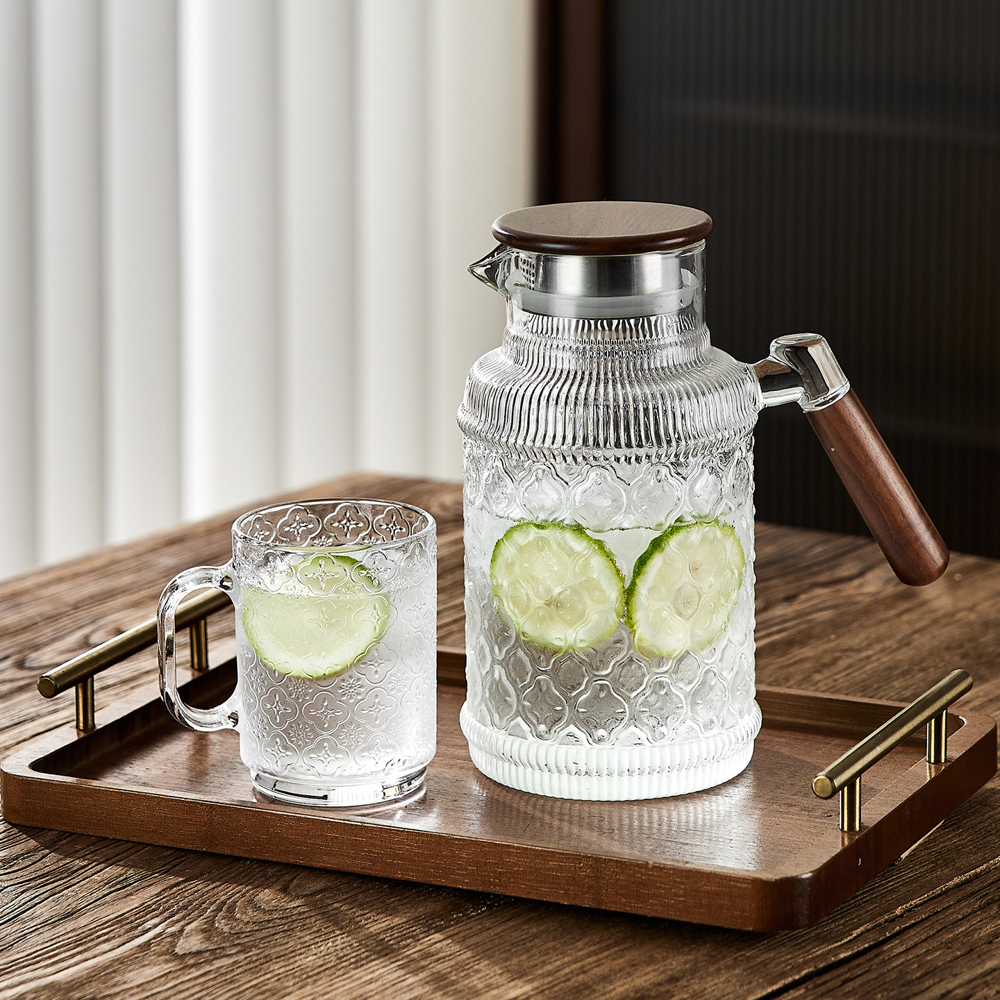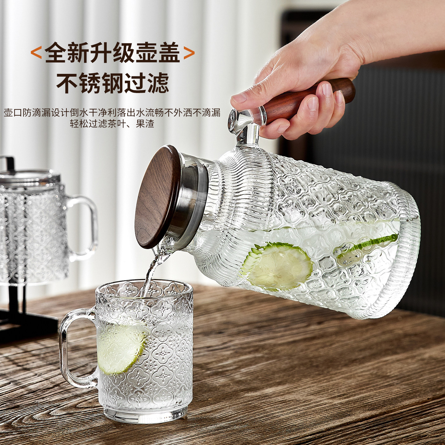 青苹果玻璃水杯子家用客厅待客套装高颜值泡茶喝果汁啤酒咖啡杯具
