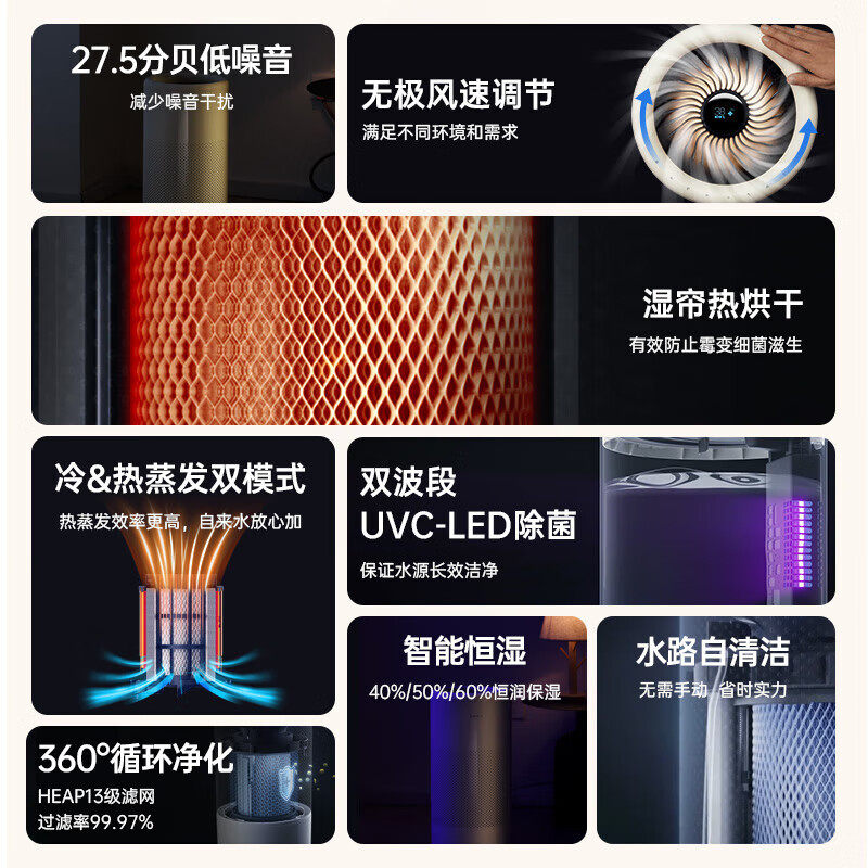bures无雾热蒸发式加湿器客厅卧室25新款家用空气加湿净化一体机