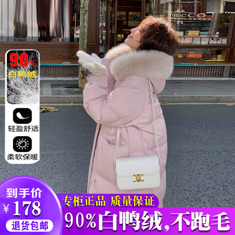 雅鹿羽绒服女2025冬季新款高级韩版中长款洋气加厚宽松白鸭绒外套