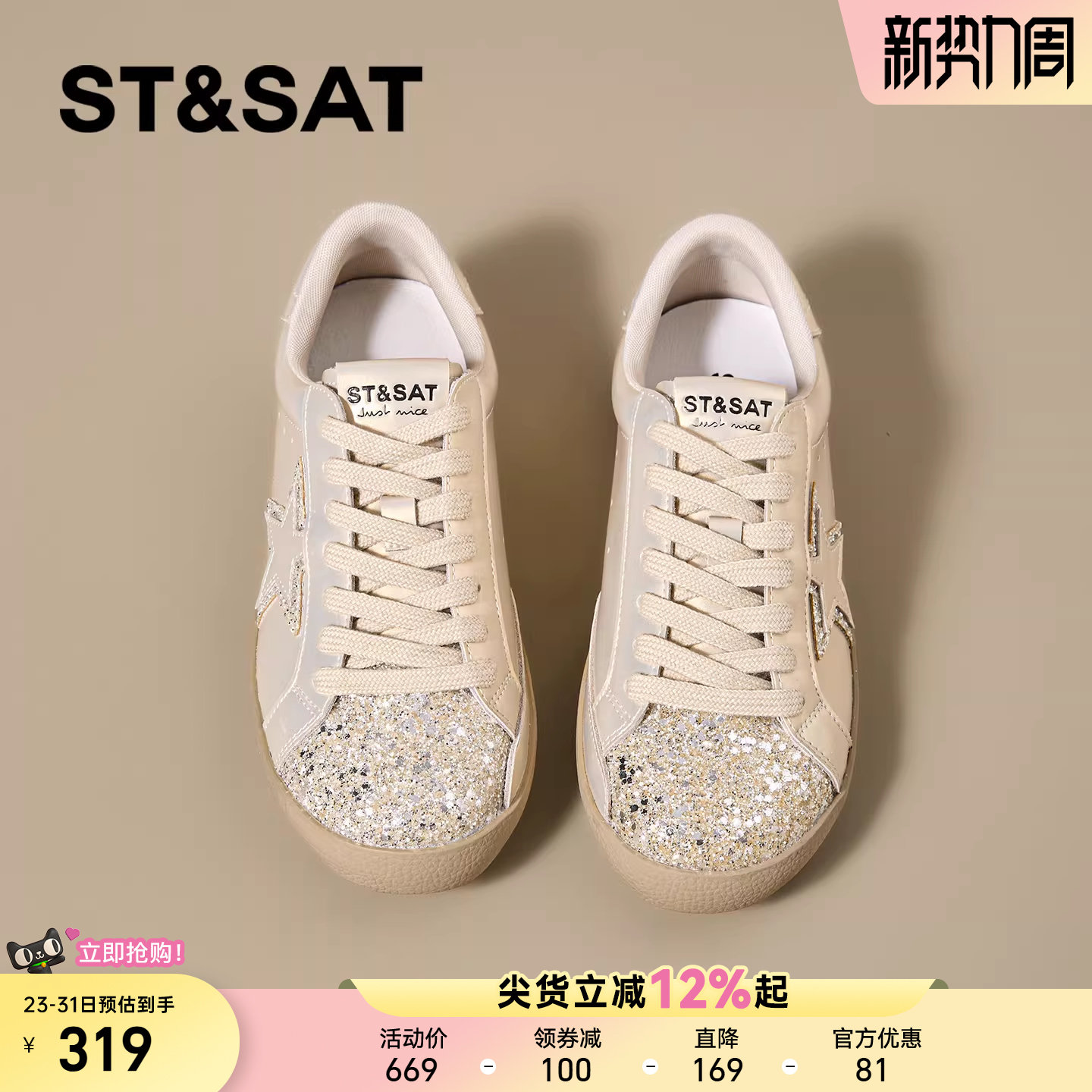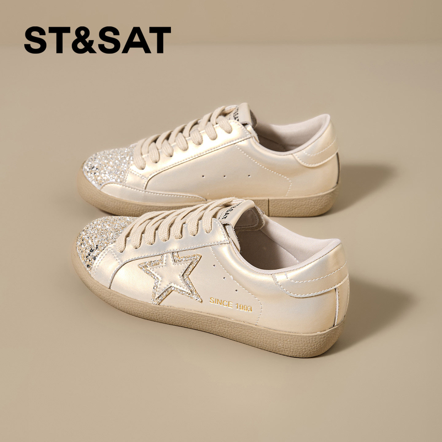 星期六平底德训鞋女2026年春季新款时尚香槟色亮片星星阿甘运动鞋