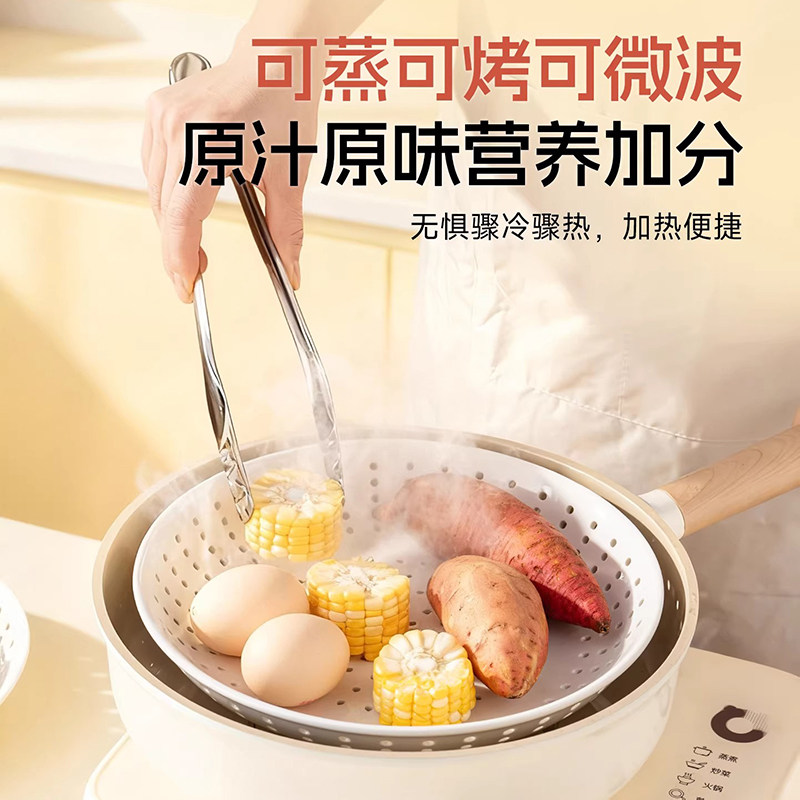 微波炉陶瓷多孔蒸盘耐高温带盖玻璃碗蒸笼圆形沥水饺子盘蒸格盘子