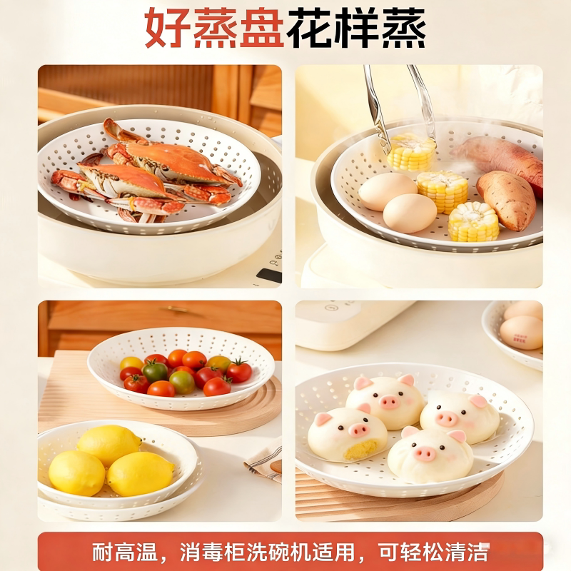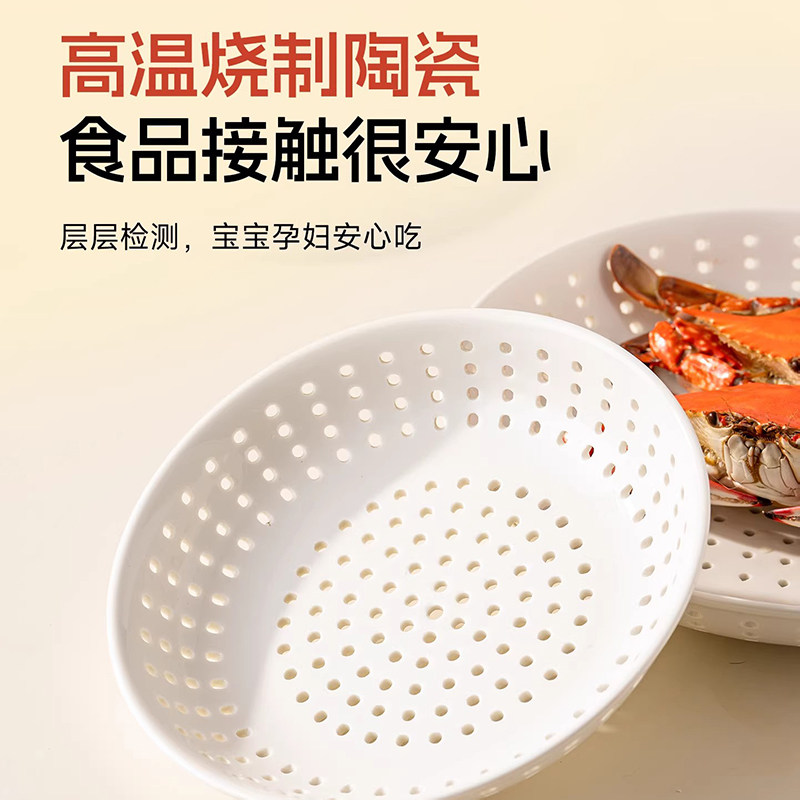 陶瓷蒸盘饺子盘蒸包子沥水盘圆形多孔蒸格蒸笼水果盘微波炉蒸锅