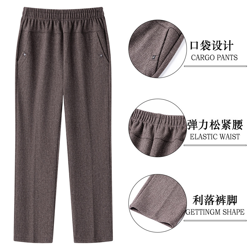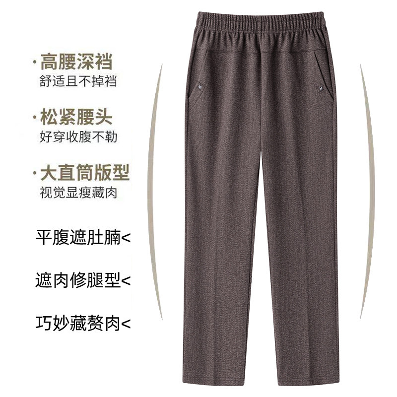 妈妈裤子春秋款松紧高腰弹力中老年女裤宽松大码直筒奶奶加绒长裤