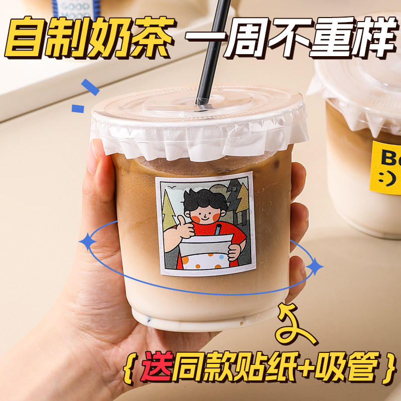 奶茶杯子一次性带盖塑料透明加厚商用外带饮料饮品打包咖啡杯网红