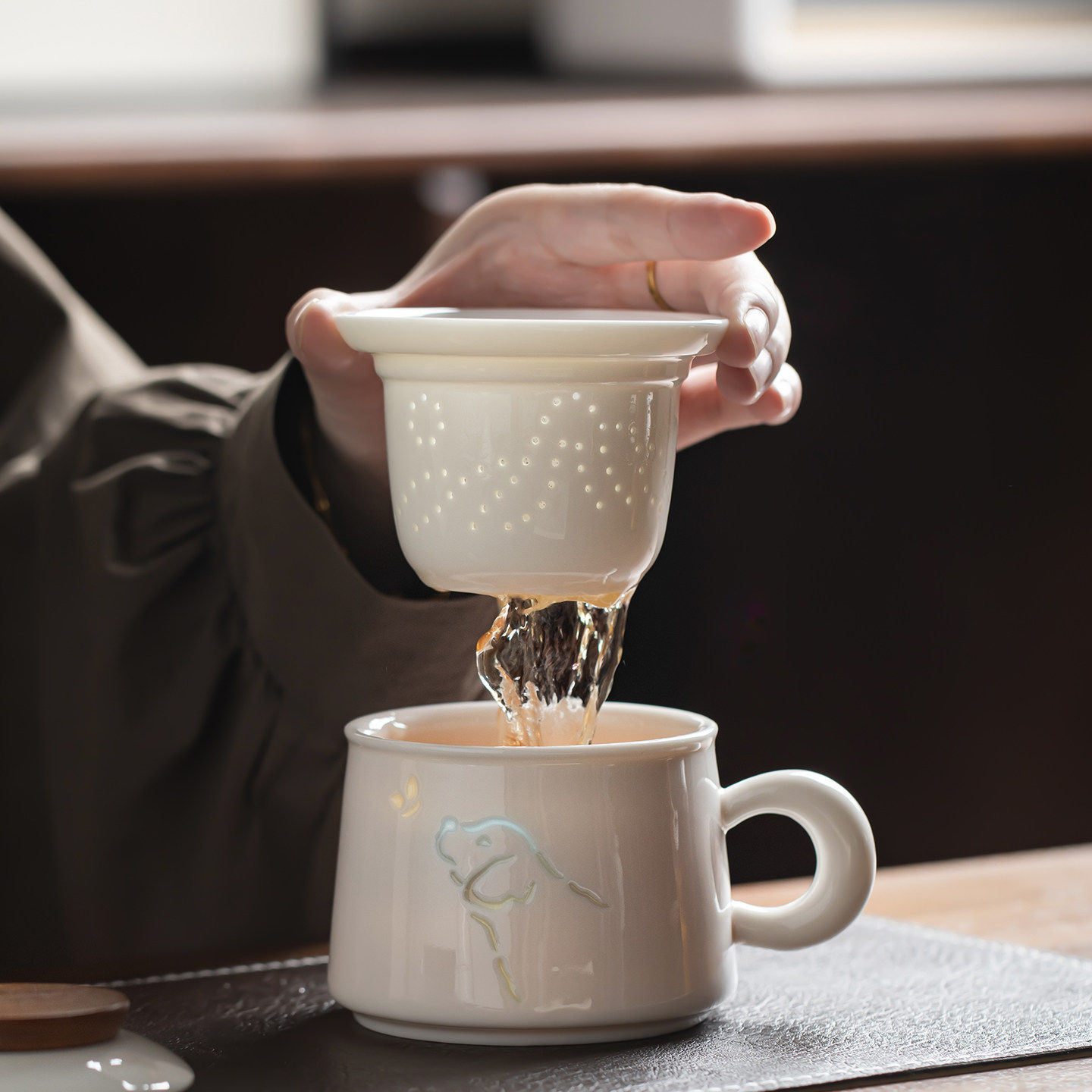 玲珑猫狗咖啡杯情侣对杯功夫茶茶道茶水分离茶杯情人节礼盒装送礼