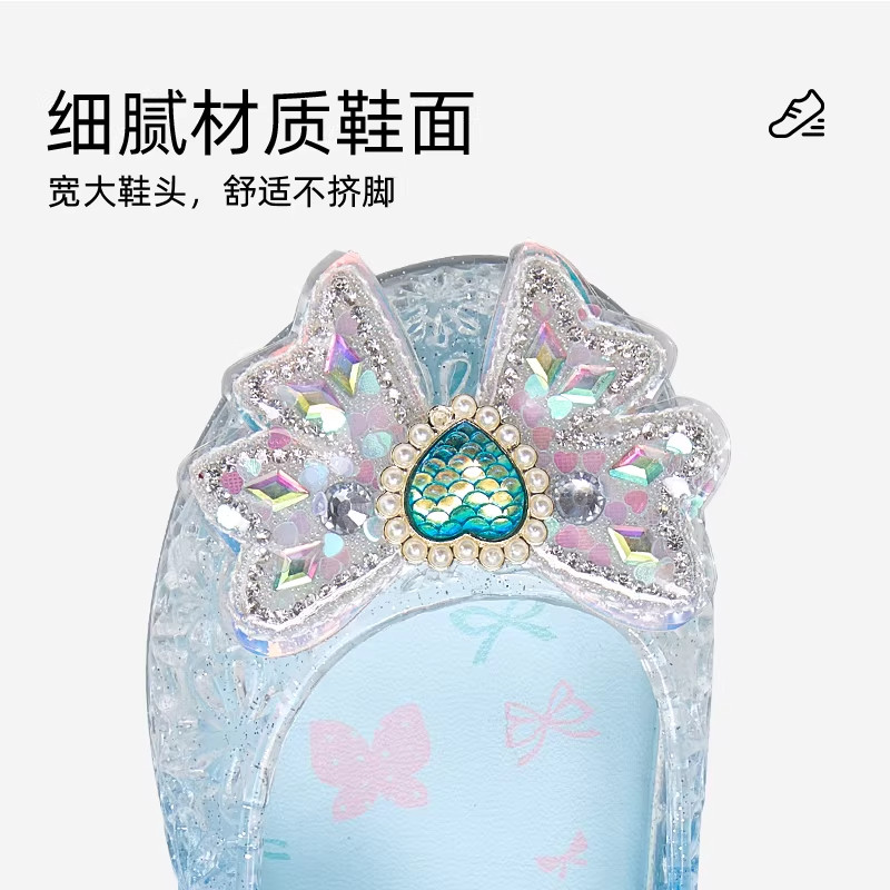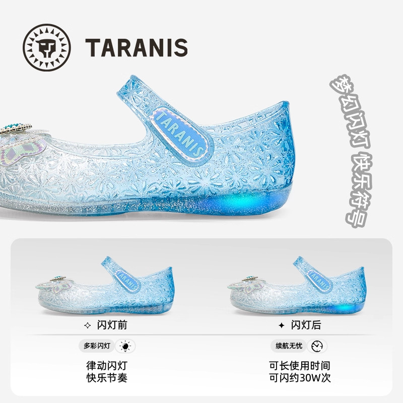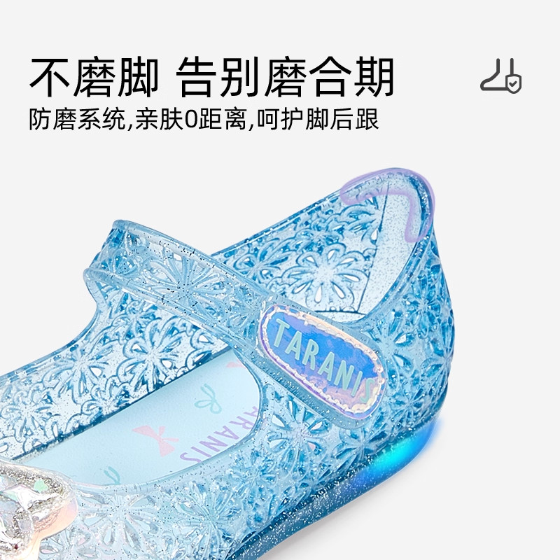 泰兰尼斯公主闪灯蓝色水晶鞋优雅英伦走秀演出聚会透明软底透气鞋