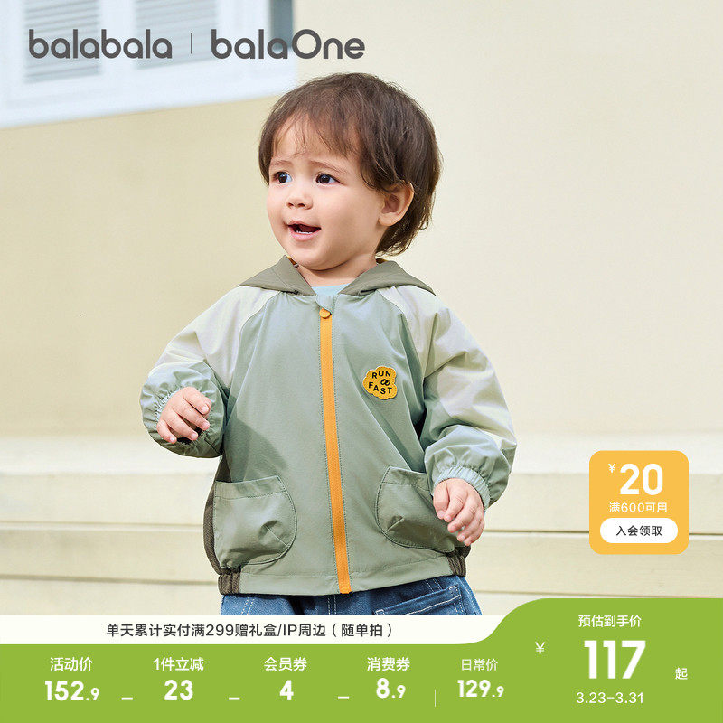 巴拉巴拉童装儿童外套男童宝宝女童2026年新款春装连帽上衣柔软