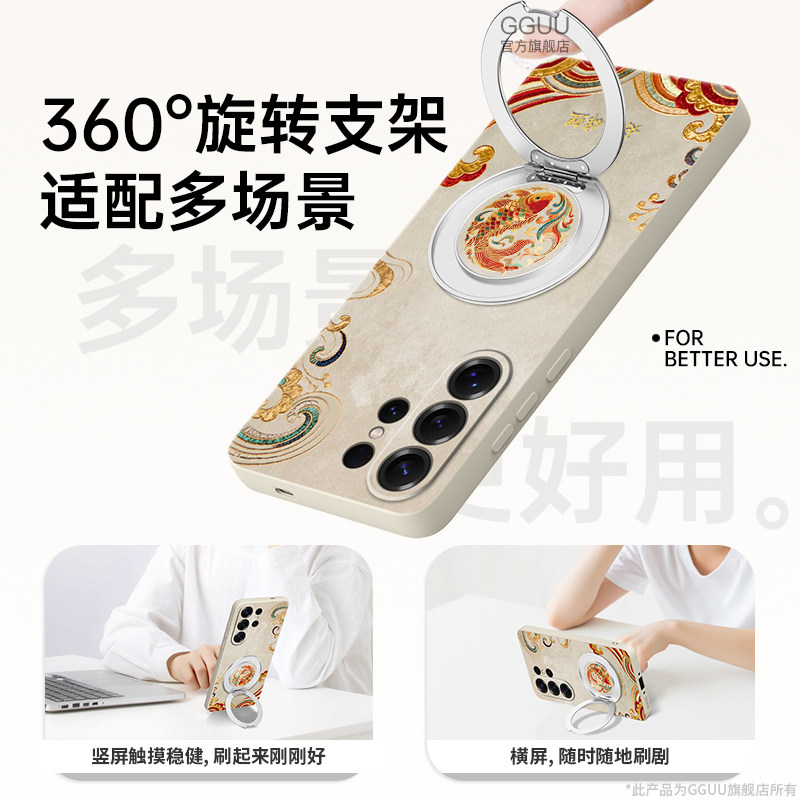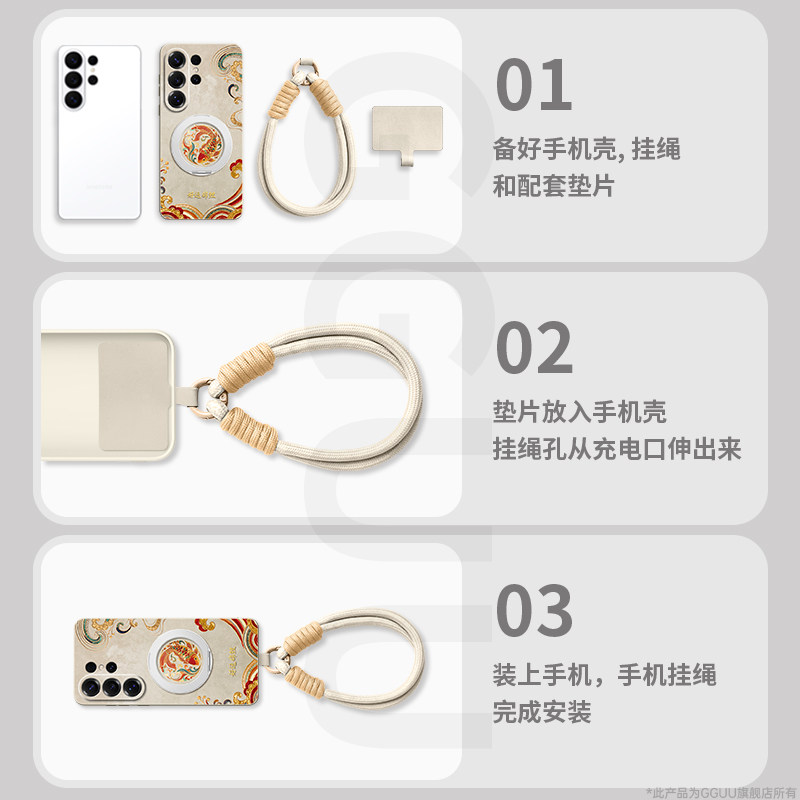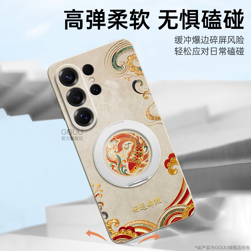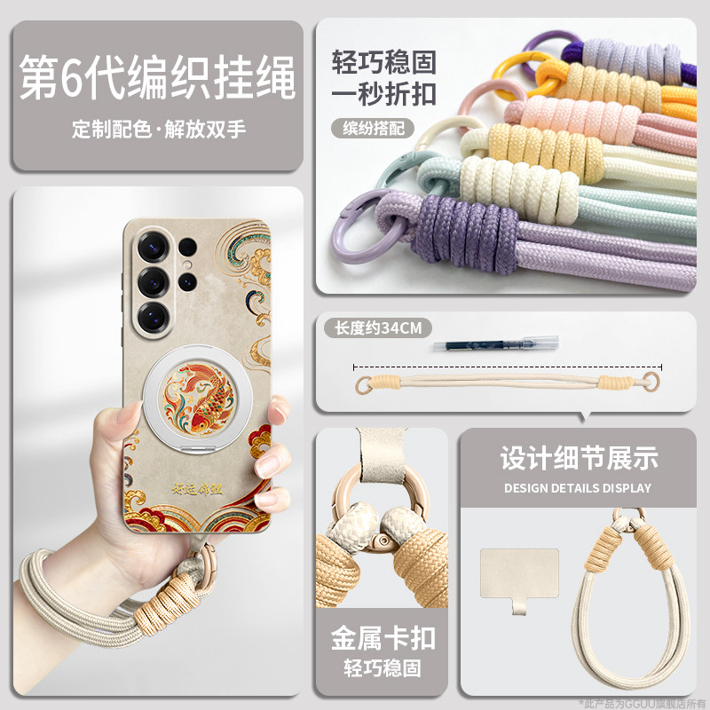 好运锦鲤适用三星S26手机壳S26ultra保护套plus新款S25带挂绳samsung硅胶Galaxy白色+旋转支架S24女的S23腕链