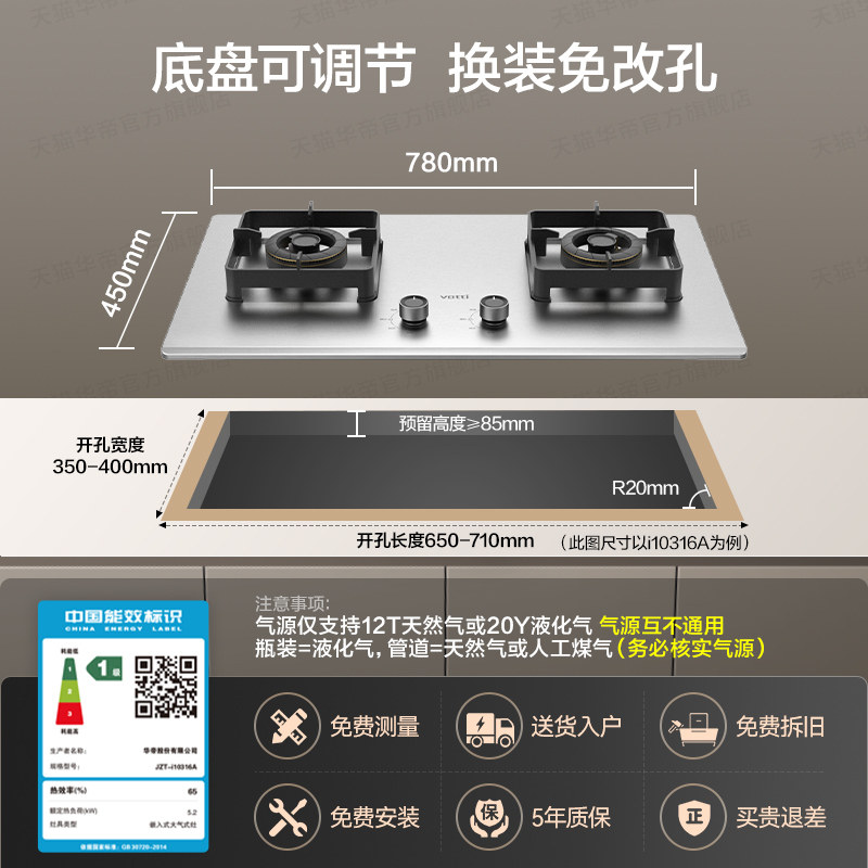 华帝不锈钢燃气灶i10316A/308A煤气灶双灶家用天然气灶台