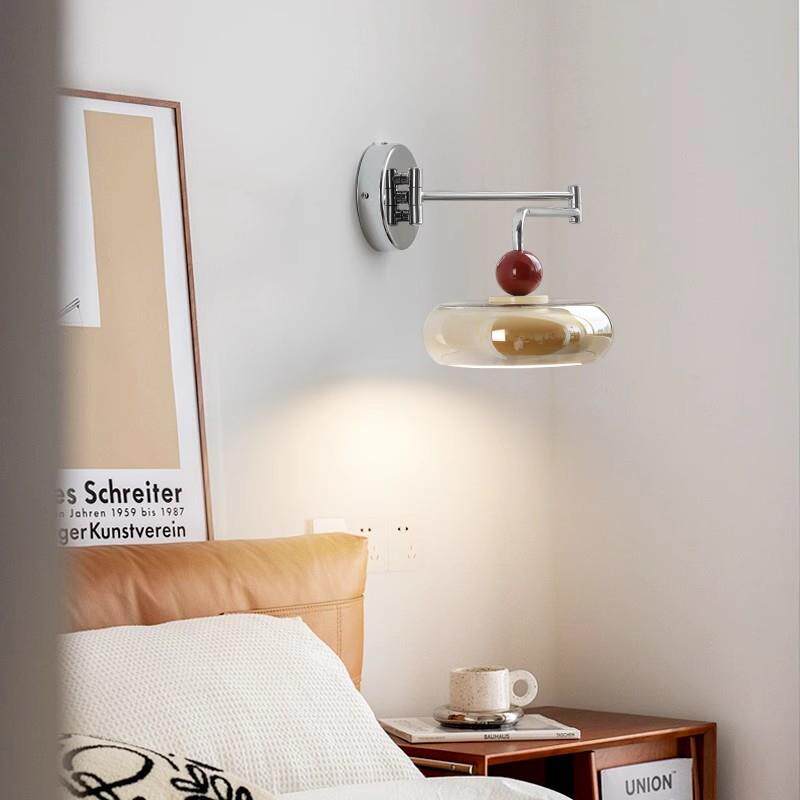 轻法式壁灯中古奶油风卧室床头灯创意儿童房主卧玻璃飞碟灯摇臂灯