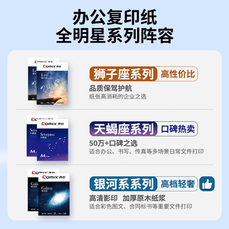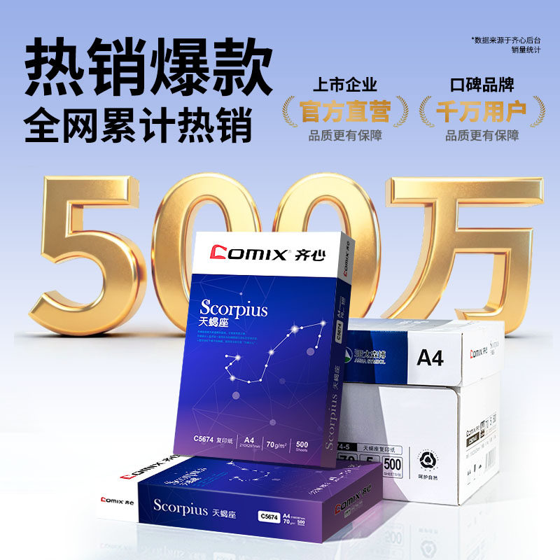 【上市企业】齐心A4打印纸复印纸白纸实惠装a4纸单包办公整箱批发天蝎银河学生草稿纸70g包邮双面打印开发票