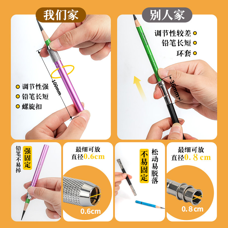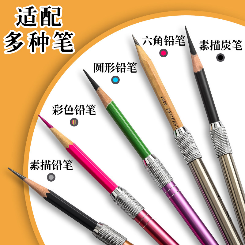 铅笔延长器短铅笔炭笔素描笔彩铅通用金属接笔器美术生专用笔套眉笔延长杆铅笔头加长器笔杆加长杆学生延笔器
