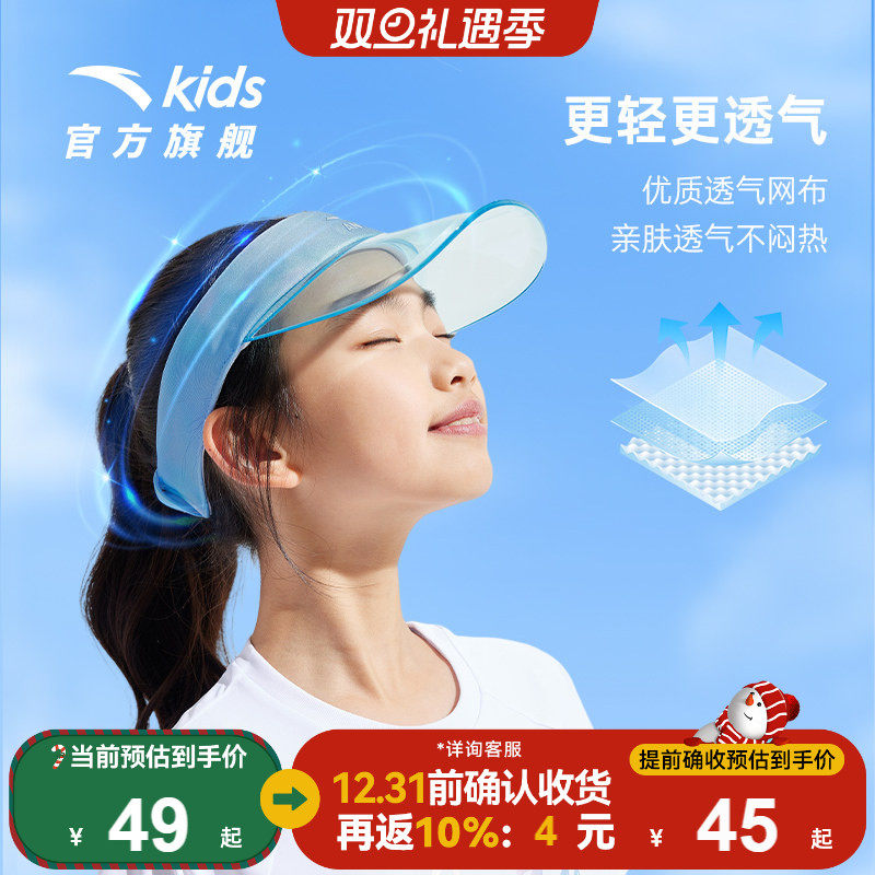 安踏儿童防晒帽女童遮阳帽夏2025款抗紫外线户外空顶帽男童帽子潮
