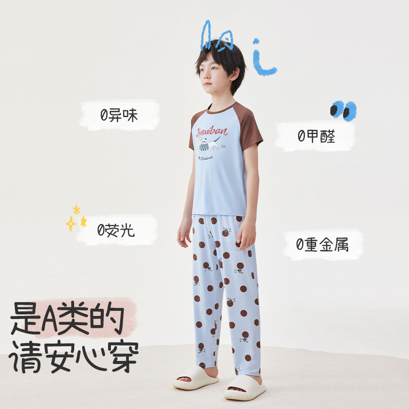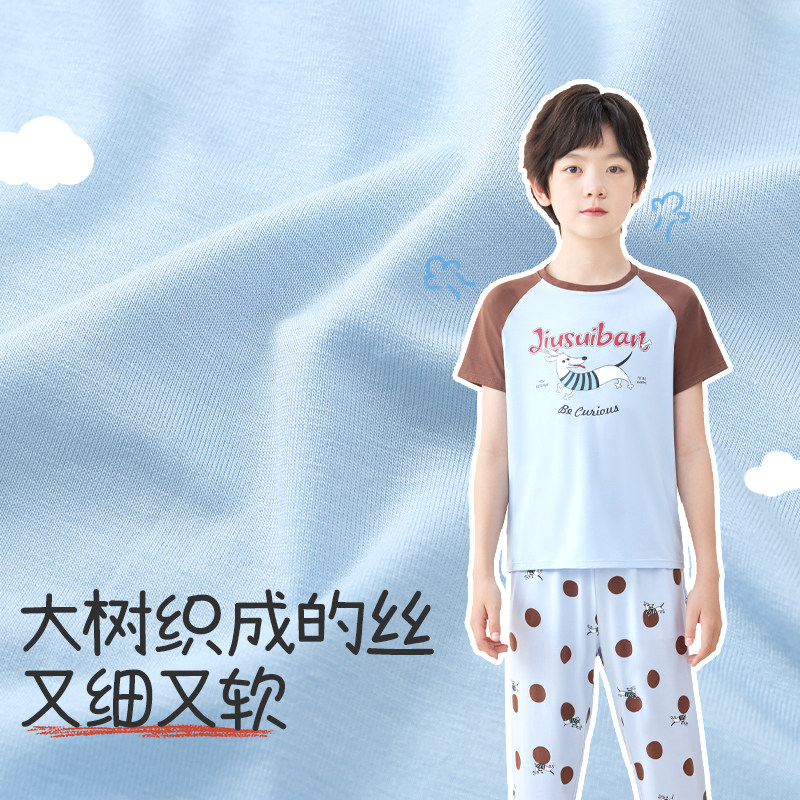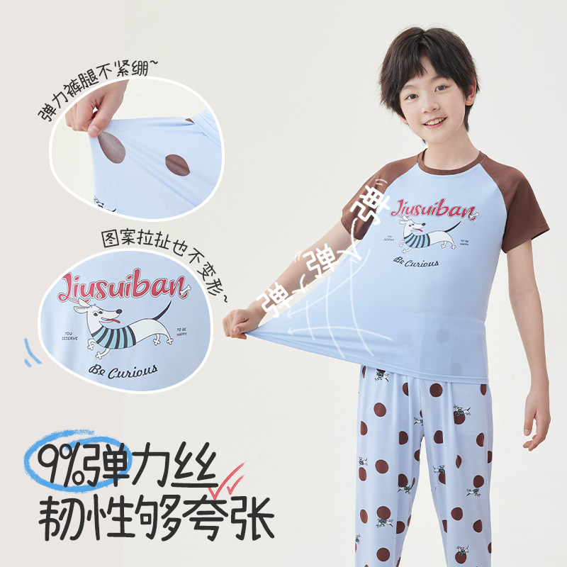 久岁伴儿童睡衣男孩夏季薄款家居服中小童宝宝清凉透气短袖长裤