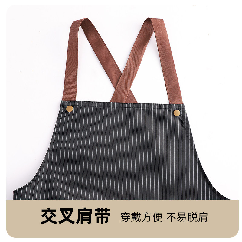 围腰长袖交叉带围裙防水罩衣耐污耐磨工作服定制logo印字上班男女