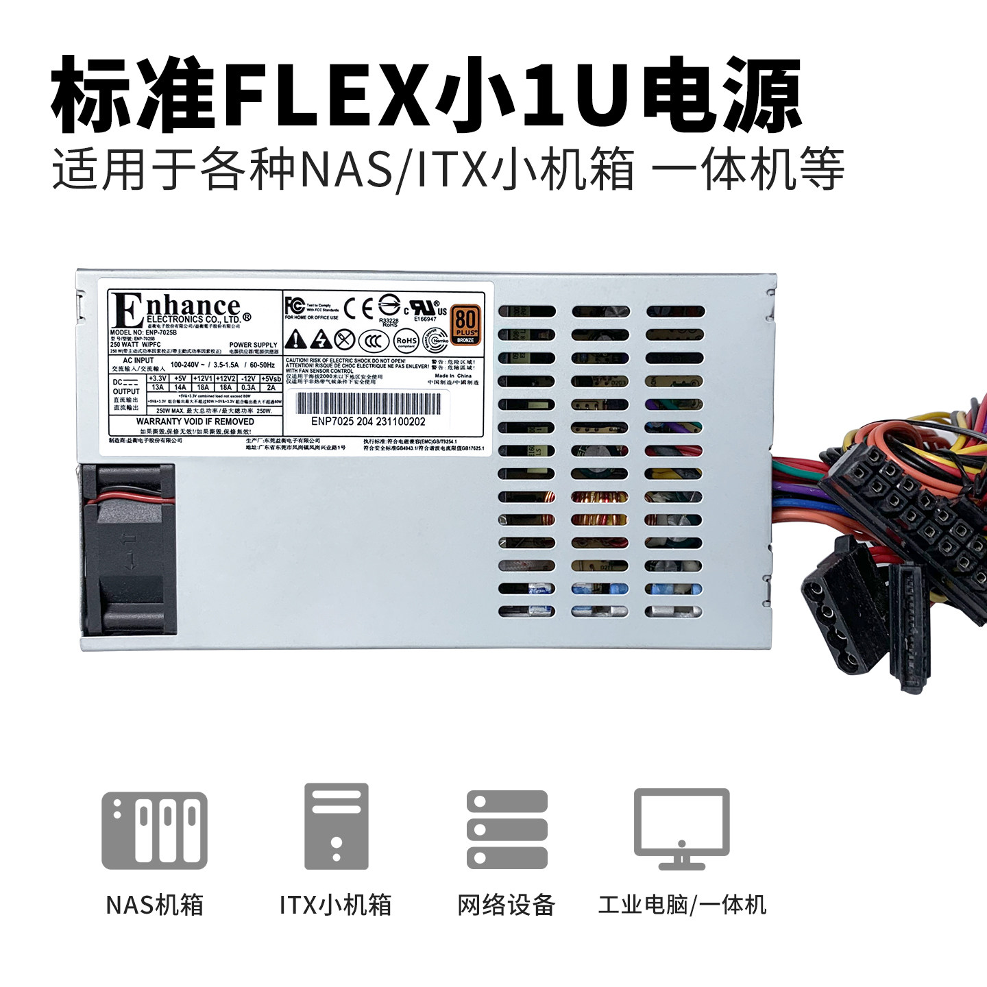 长城航嘉小1u电源150-600W铂金静音itx小机箱NAS工控益衡flex电源