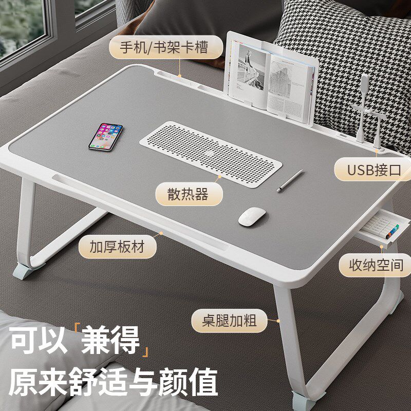 床上小桌子学习桌可折叠升降电脑桌书桌宿舍学生写字床用家用卧室坐地飘窗懒人笔记本电脑支架大号办公小桌板