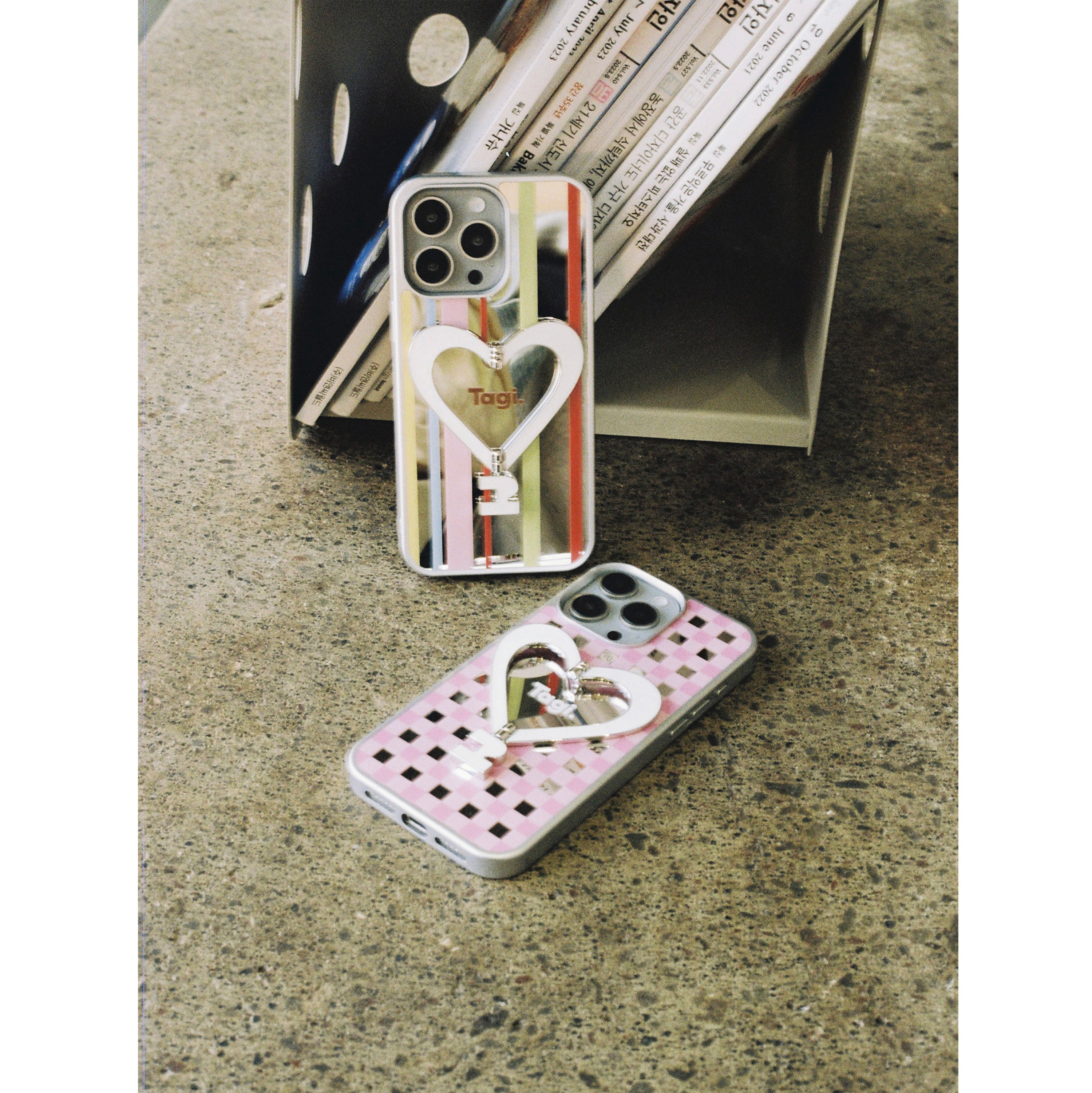 Tagi.《让人开心》金属支架皮质爱心手机壳适用于iPhone17pm/16pm/15pm