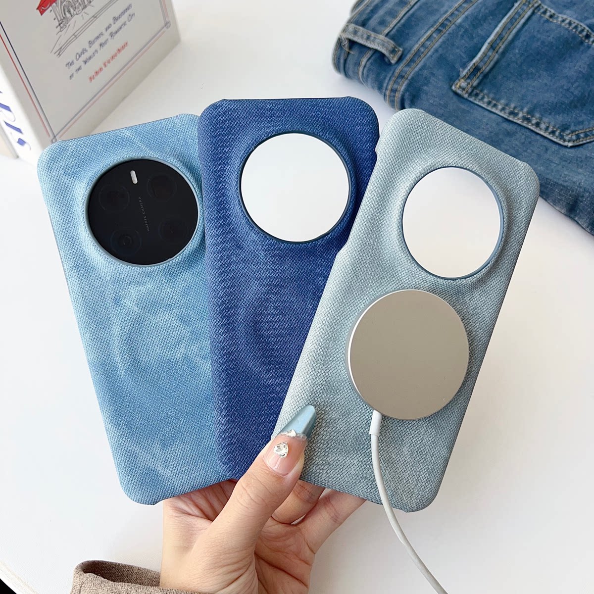 港风个性牛仔布纹适用荣耀magic7pro手机壳新款素皮耐脏魔术8Pro磁吸充电半包防摔硬壳