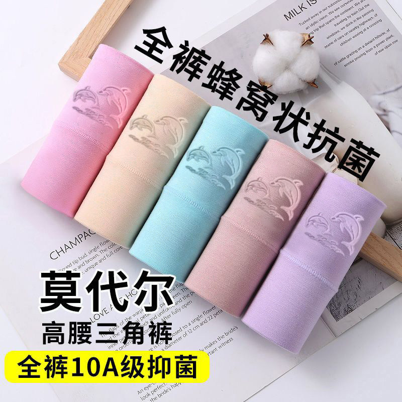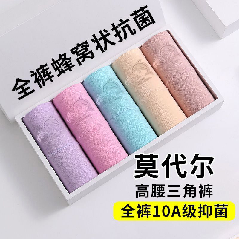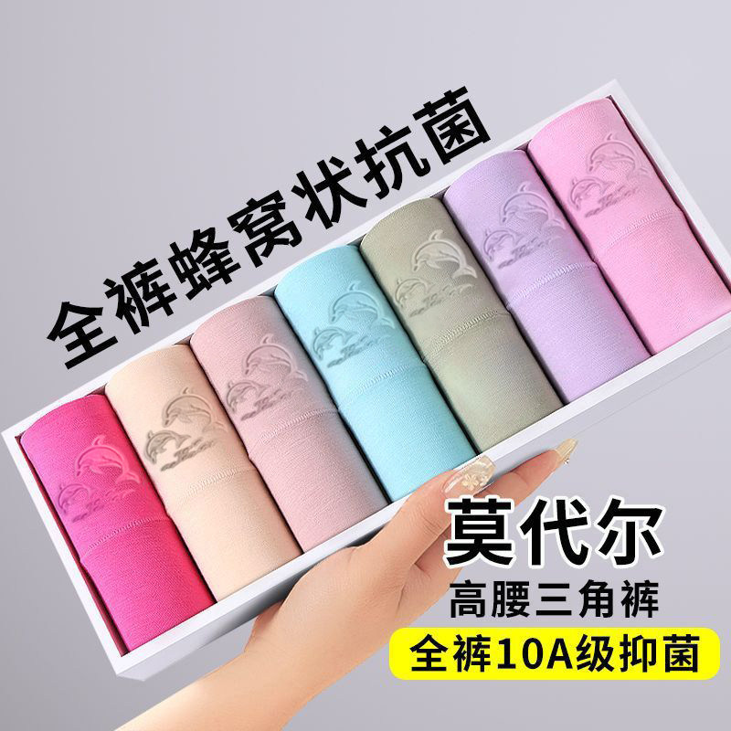 莫代尔高腰收腹女士内裤中老年大码胖mm全棉抗菌裆三角裤紫色舒适