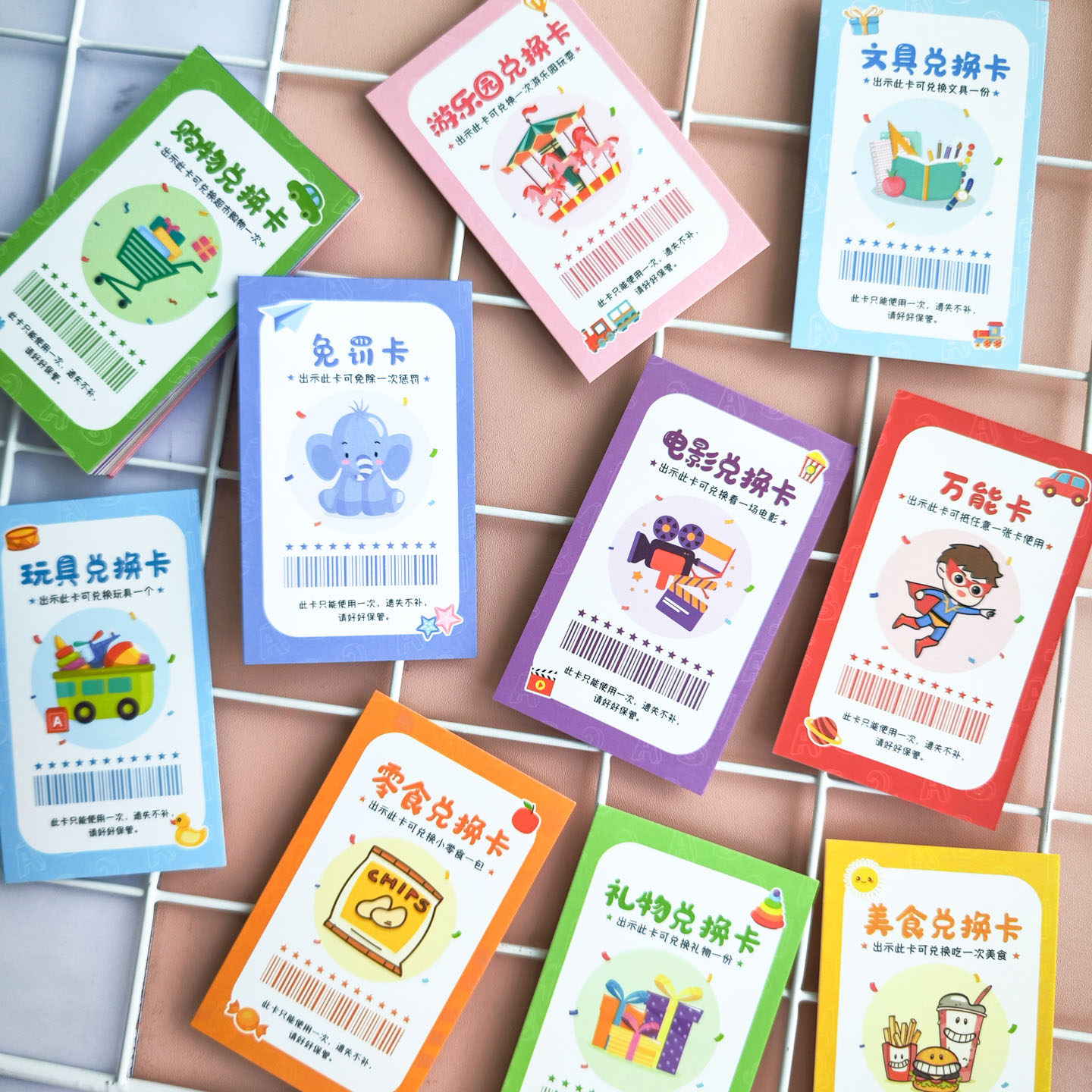 儿童孩子家庭积分奖励兑换券亲子特权任务免罚写作业卡创意老师激励幼儿园小学生学习心愿礼物奶茶电影兑换卡