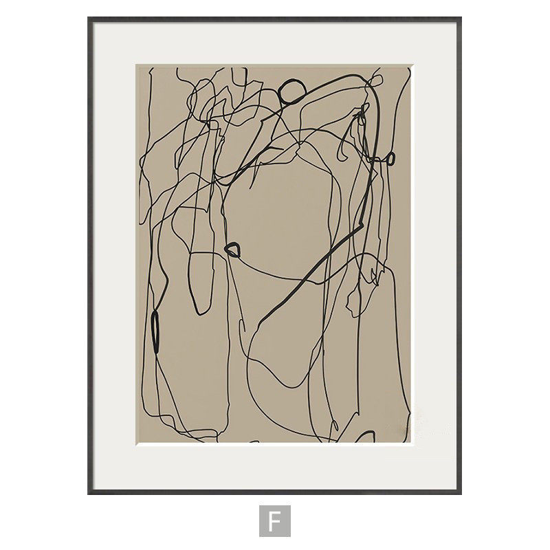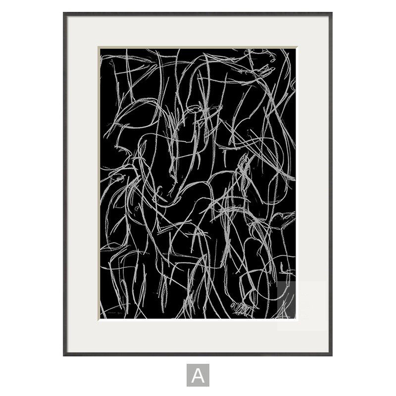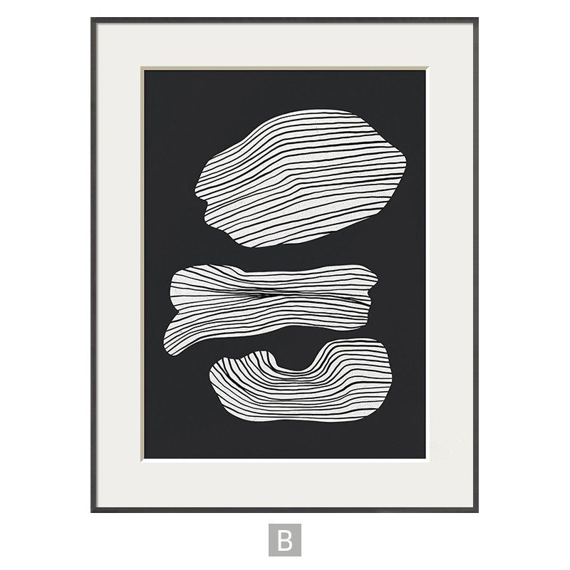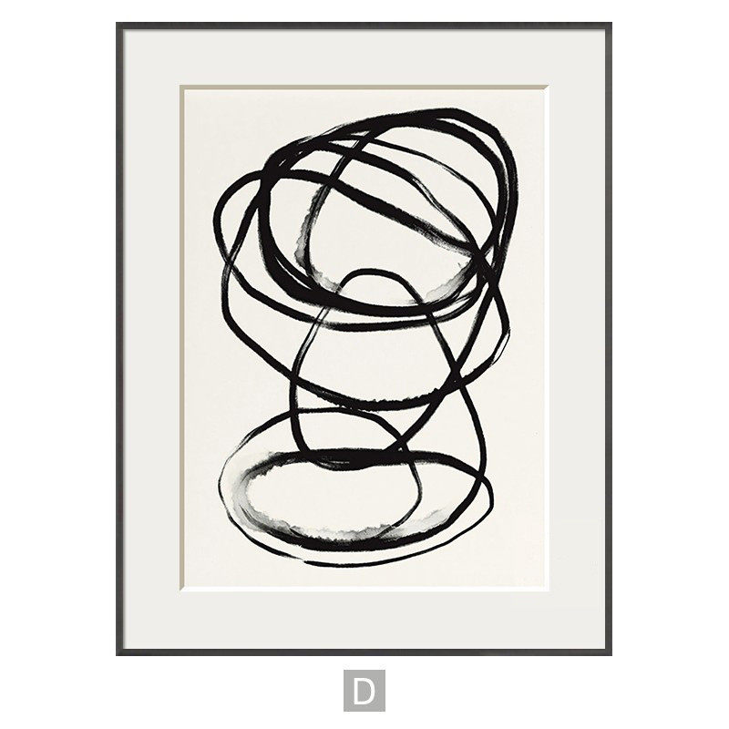 黑白侘寂风小众文艺装饰画抽象线条样板间挂画现代文艺客厅墙壁画