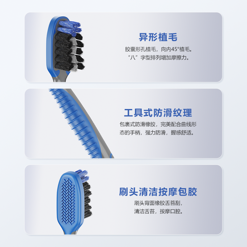 怡宝三面牙刷成人软毛包裹式立体无死角头舌苔清洁护齿家庭装男女