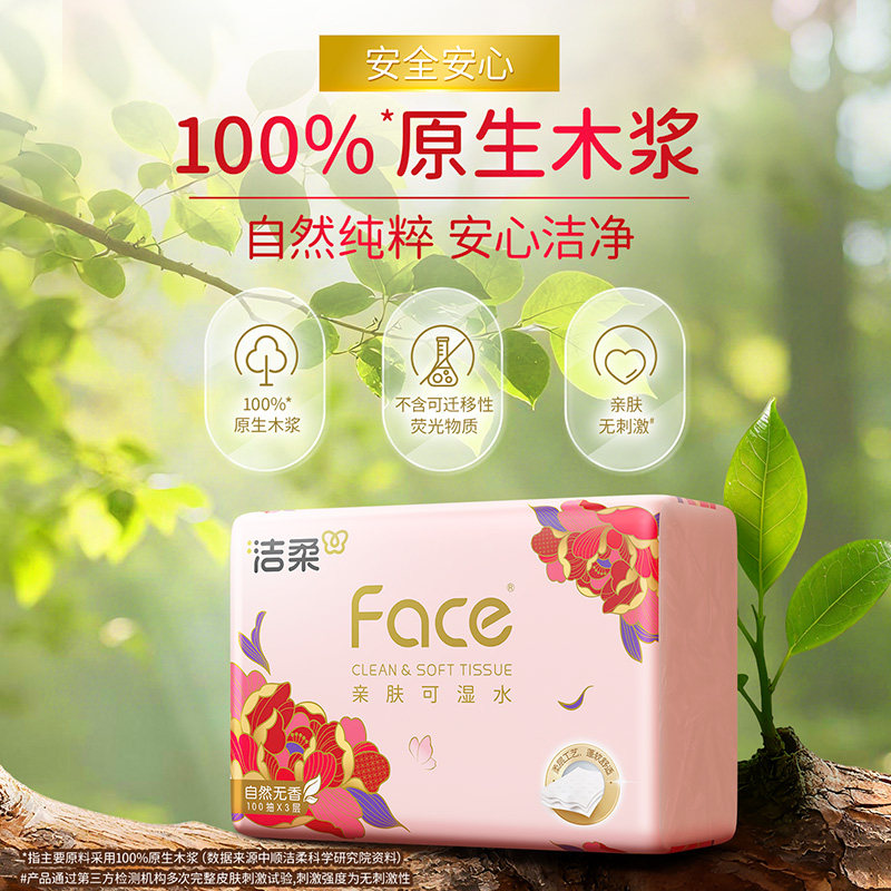洁柔face抽纸新春版餐巾纸面巾纸100抽24包整箱家用擦手卫生纸巾