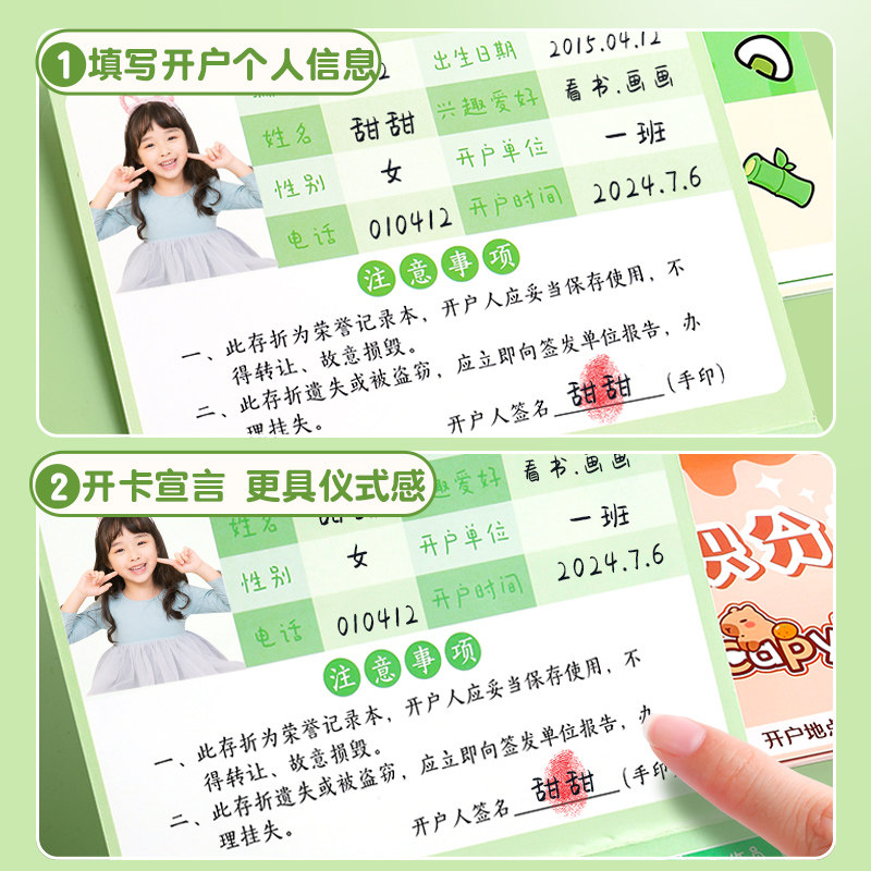 积分存折小学生专用高颜值阅读记录卡儿童学习阅读存折心愿兑换卡一年级二年级亲子登记册课外好书打卡记录本
