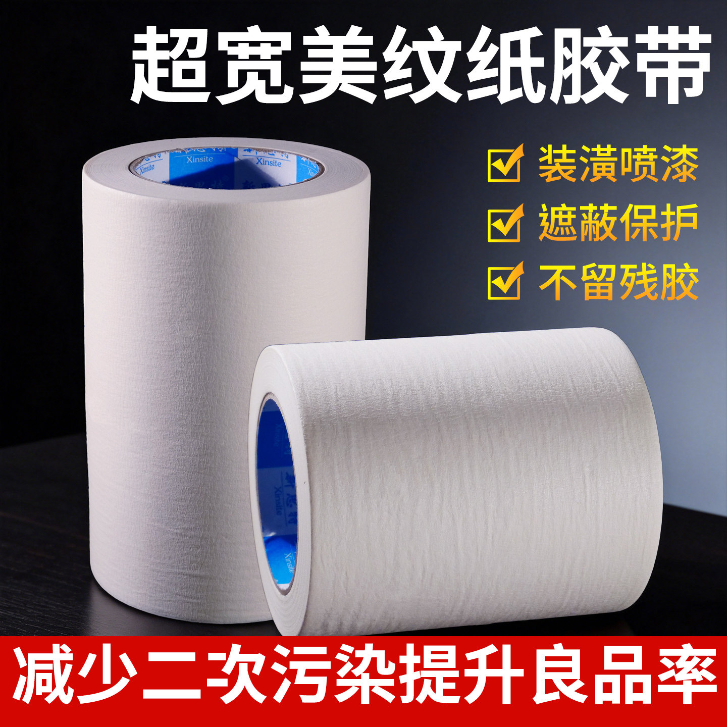 白色美纹纸胶带5cm油漆用批发汽车维修装修用喷漆遮蔽墙面无痕纸胶布不留胶美缝手撕超宽10cm加宽特宽