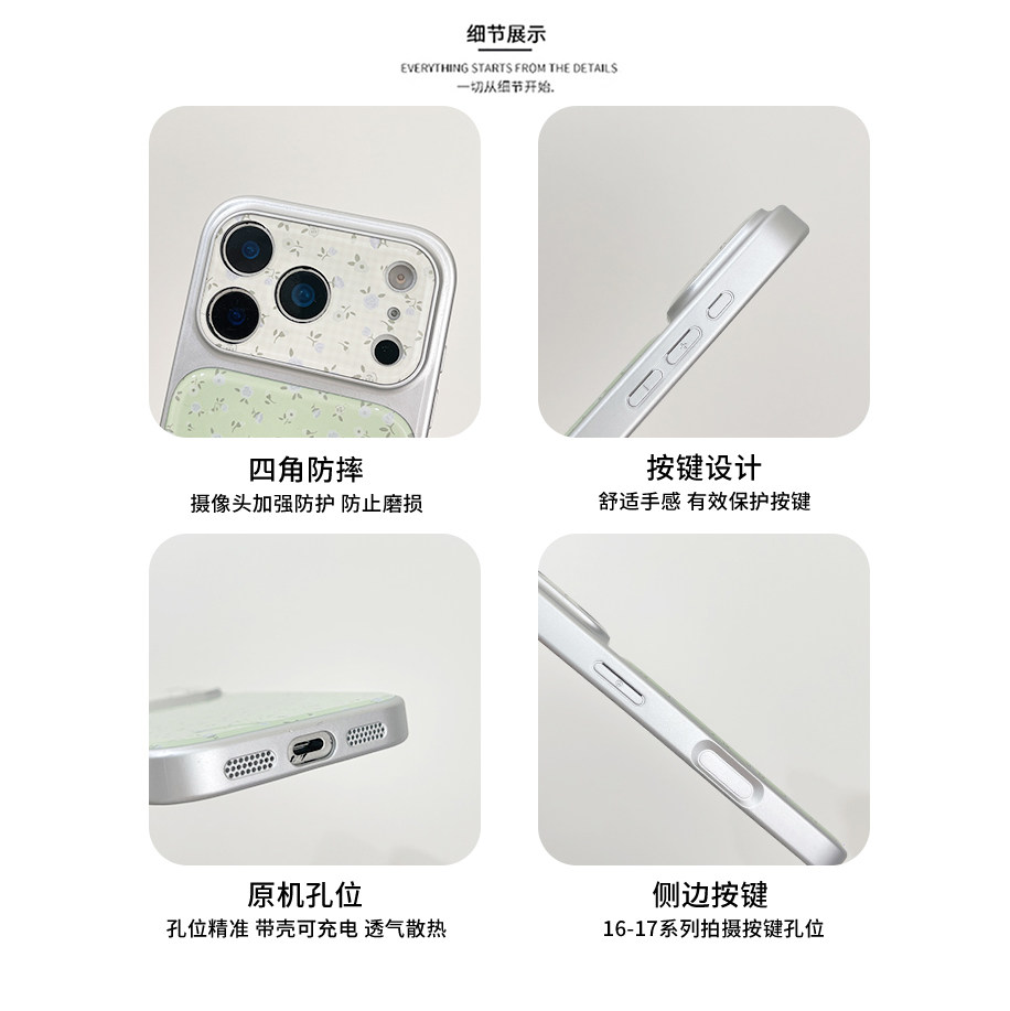 kaia 春夏甜美少女心小清新绿碎花适用苹果17promax手机壳iphone16pro新款17女14pro创意15pro全包防摔手机套