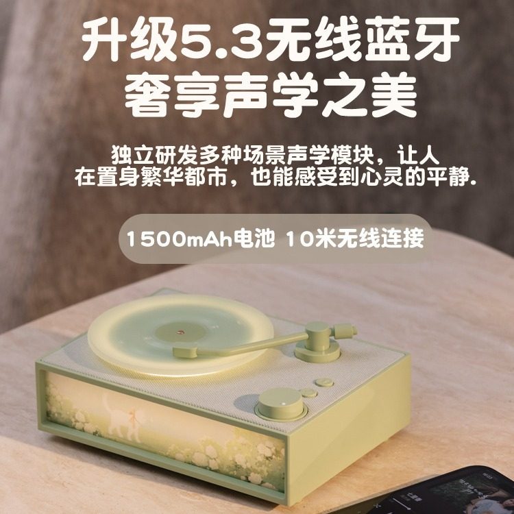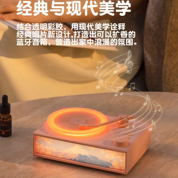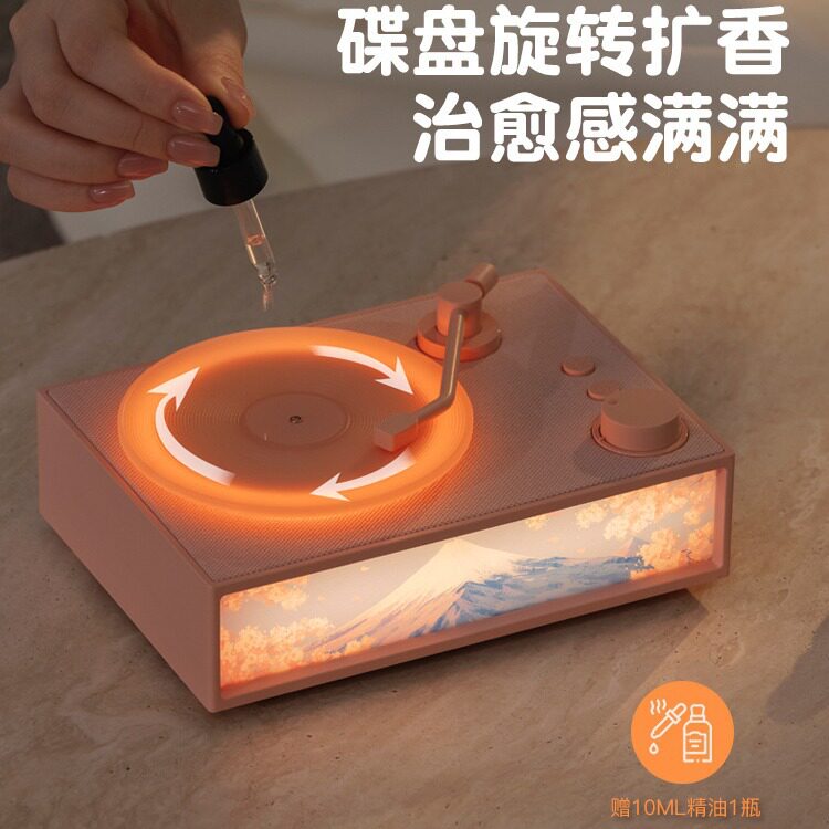 复古香薰黑胶唱片蓝牙音箱氛围感夜灯送女生高级生日礼物无线音响