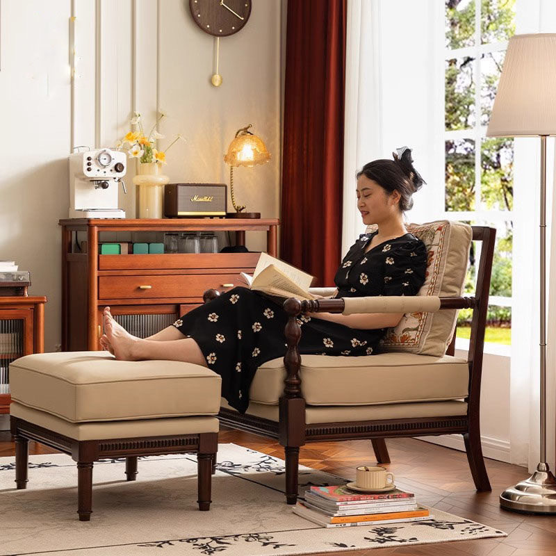 美式纯实木客厅休闲椅大小户型别墅白蜡木单人沙发椅懒人老虎默航
