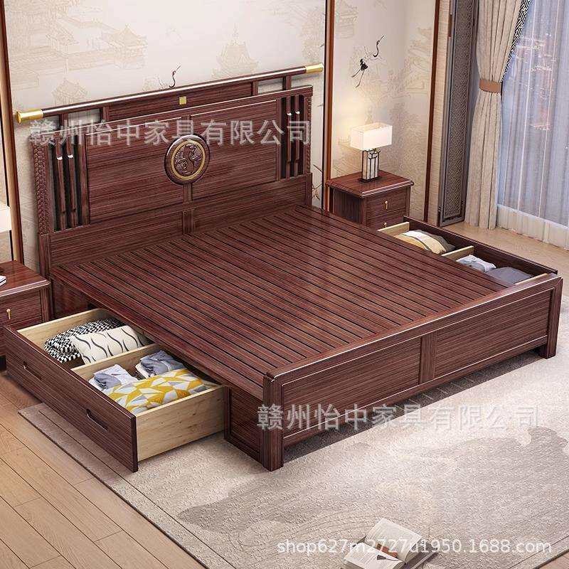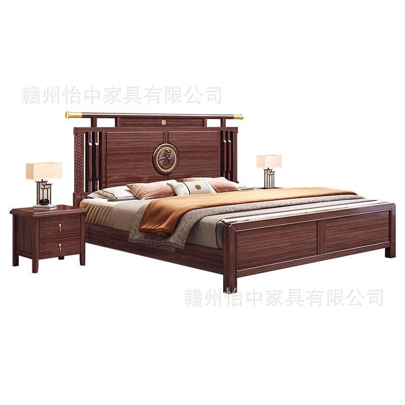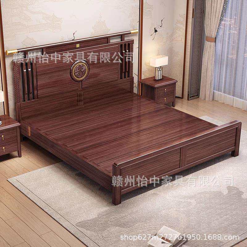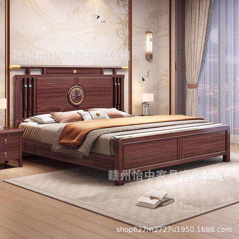 新中式乌金木实木床现代高端1.8米主卧婚床家用轻奢卧室储物家具