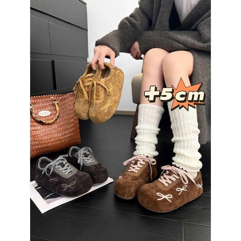 真皮厚底内增高德训鞋女秋冬加绒保暖复古大头阿甘鞋休闲运动板鞋