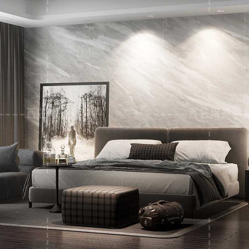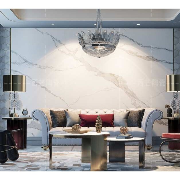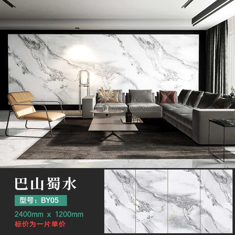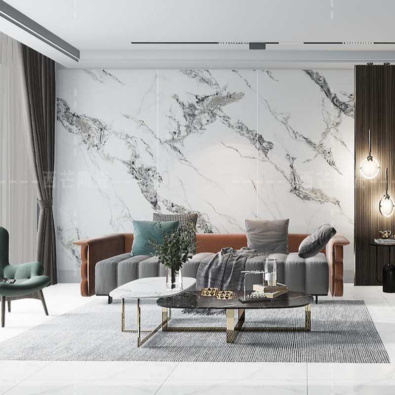 别墅客厅电视背景墙通体大理石瓷砖1200x2400大板岩板雪花白地砖