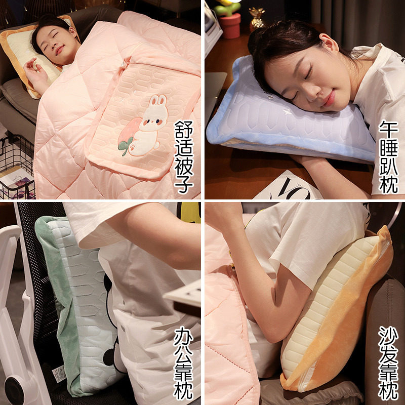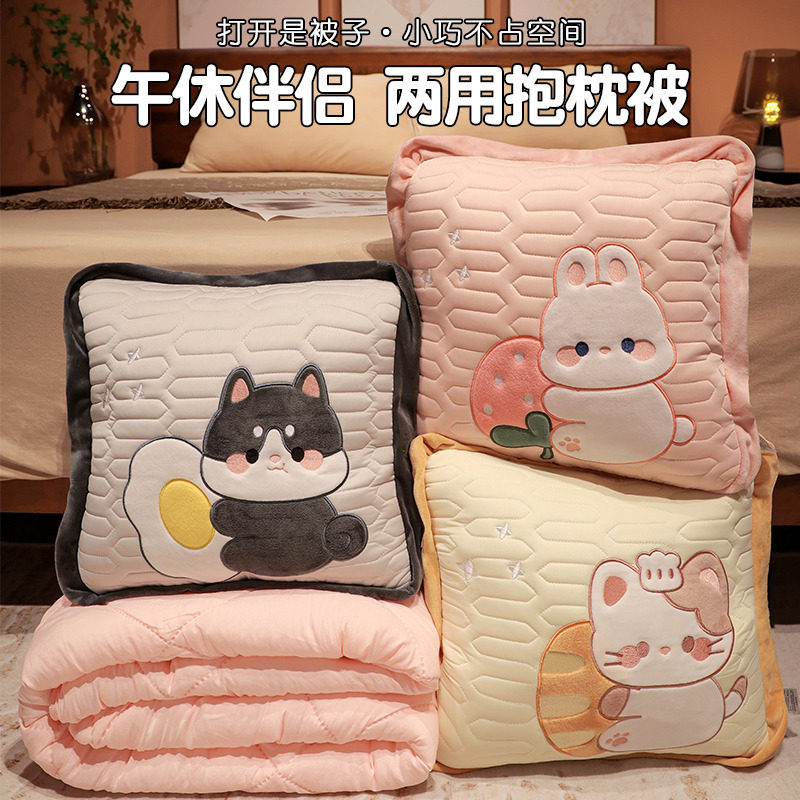 卡通乳胶两用抱枕被办公室午休折叠被四季女生车载靠枕空调被舒适