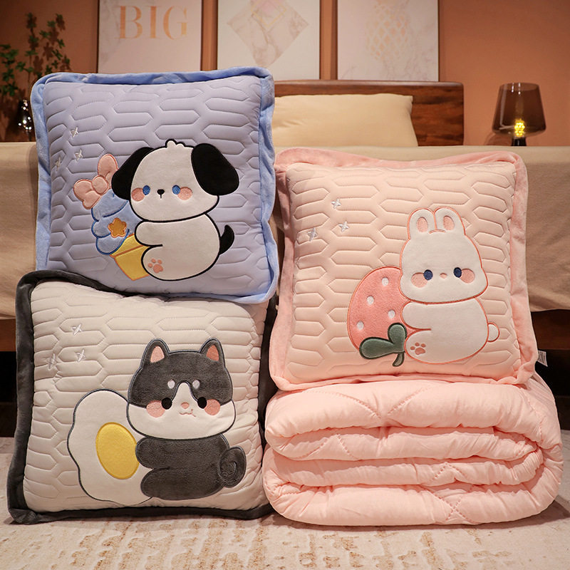 加厚牛奶绒小狗抱枕被子两用办公室客厅手提午休毯折叠学生靠垫冬