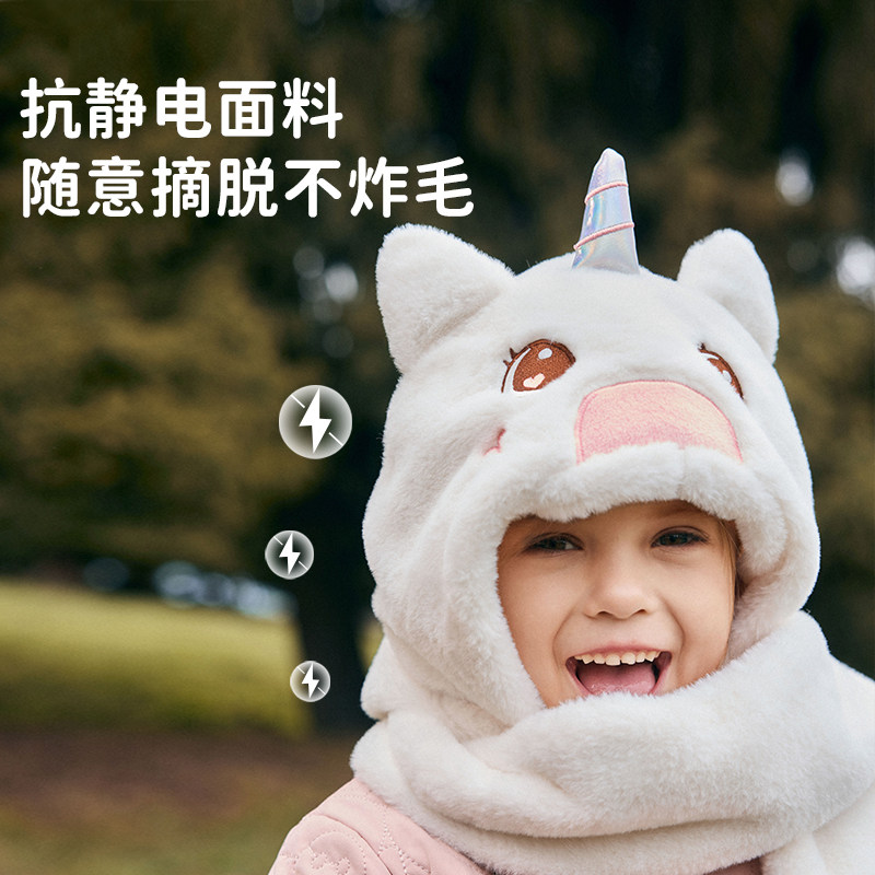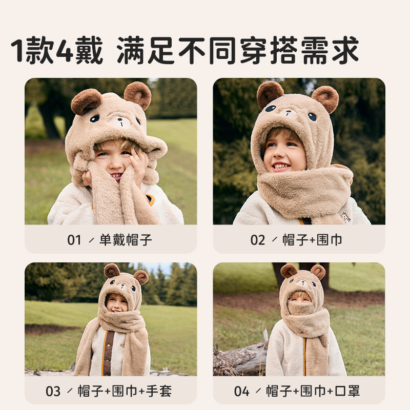 尼多熊儿童帽子围巾一体冬季防风帽宝宝毛绒护耳帽女童加厚保暖帽