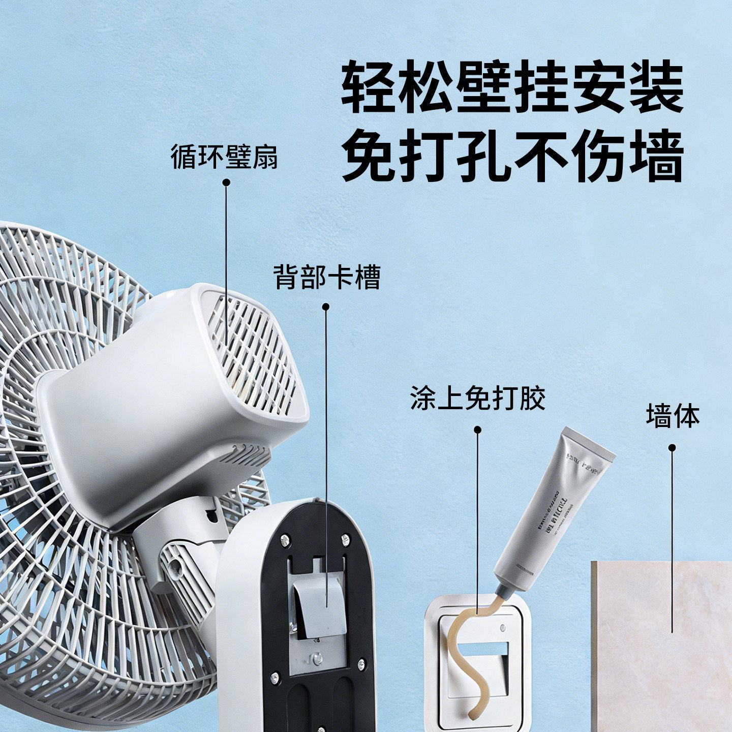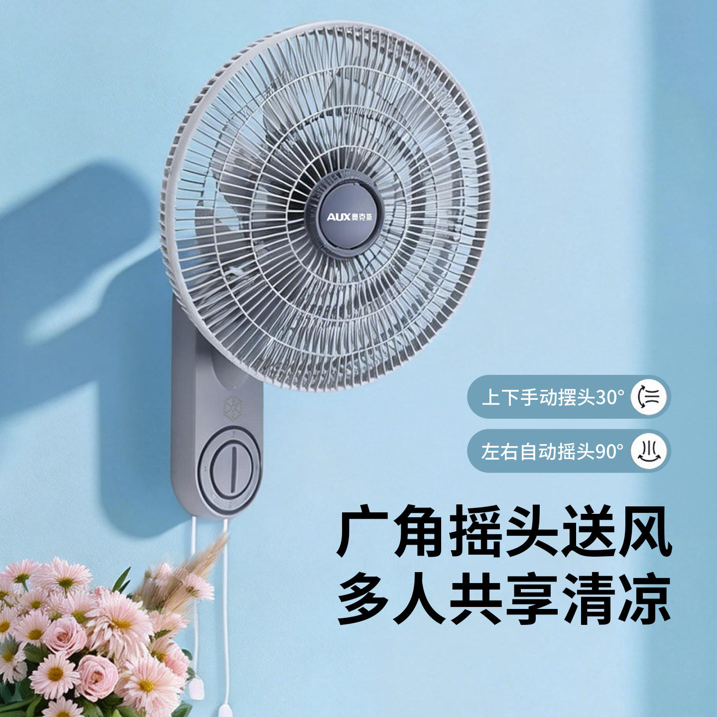 奥克斯壁扇壁挂摇头免打孔电风扇家用客厅循环扇变频遥控厨房节能